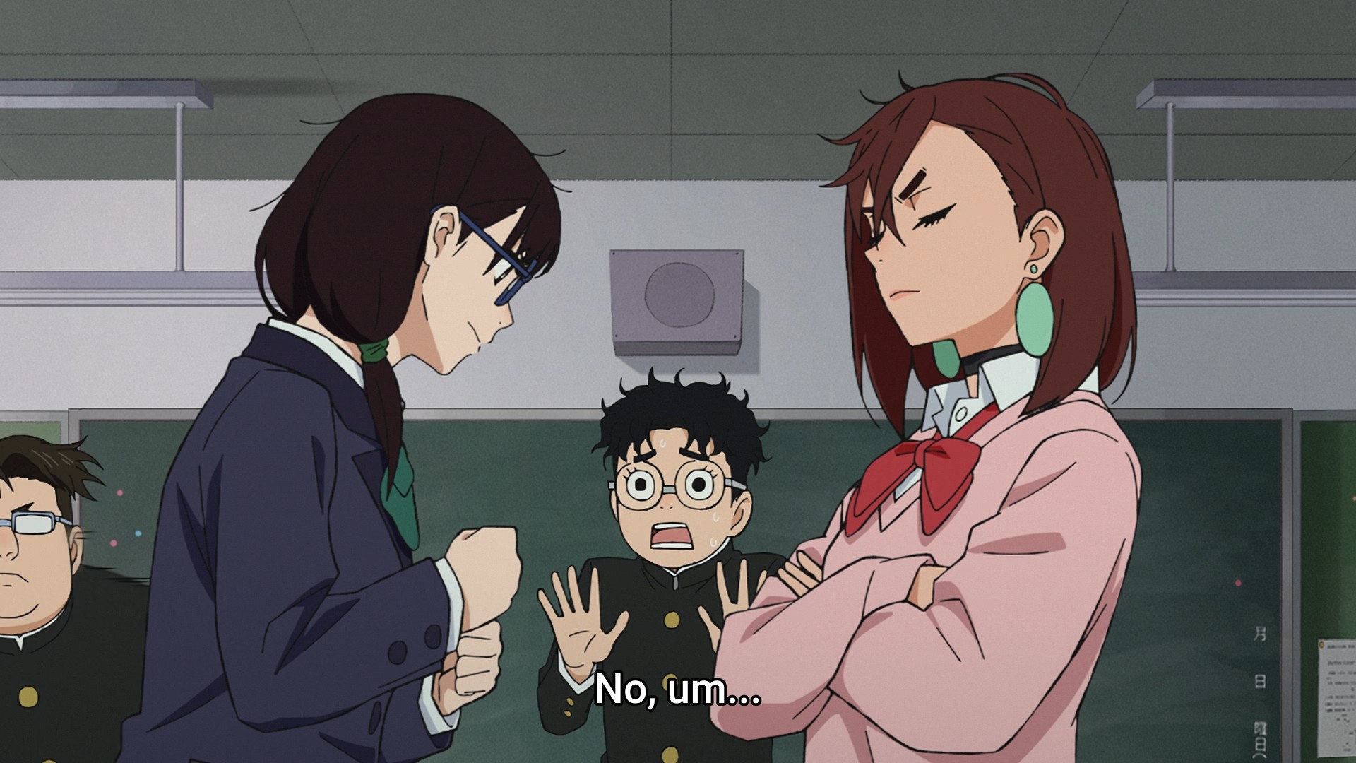 - I wish Okarun had been a little more assertive and jumped to Momo’s defense. The new girl levies quite an accusation at Momo’s feet, and Okarun can barely say anything in response. If he had a little more balls in this situation (pun intended), it would’ve been a nice way to reinforce all the character development we’ve been seeing from him in the past few episodes. The fact that Okarun is back to being meek just because they’re at school is a little disappointing. C’mon, your friend is being attacked. You’ll risk your life against an evil mountain spirit, but you’re scared of your class president? Bro. Seriously, will Okarun be the type of guy who needs Momo to speak to the manager when they get his order wrong? Sure, he apologizes to her for his lack of action after the fact, but at some point, you gotta stop apologizing and start doing.