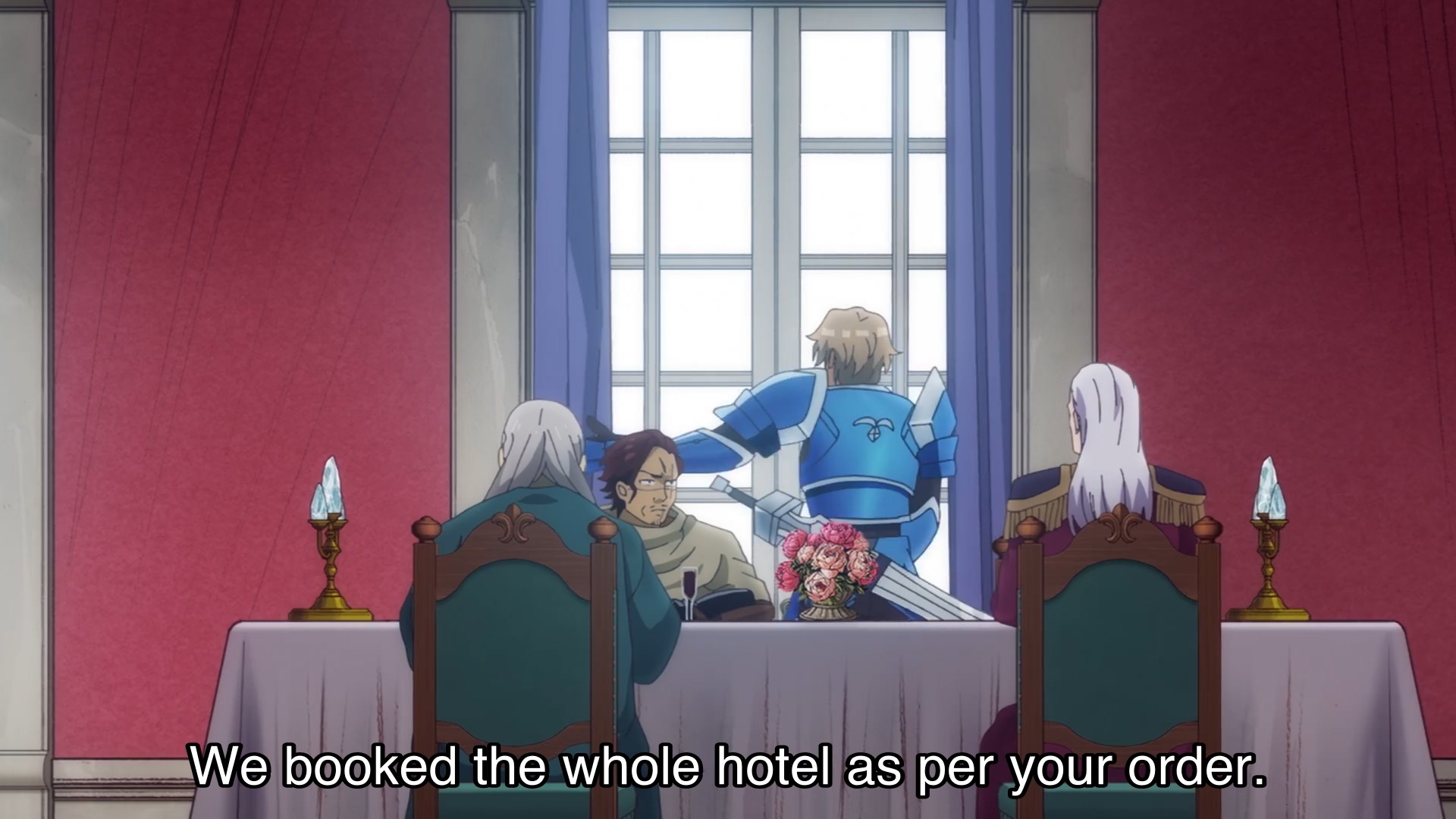 In the second half of the episode, Dennis crashes the conspirators’ dinner. Well, there are only four conspirators, so this isn’t exactly the deep state. Nevertheless, our hero’s first course of action is to feed them fried rice. He then uses something called “Dread Voice” to force everyone but Vigo into submission. As a result, the noble spills the beans on everything, and his confession ends up being broadcasted to a bunch of very important people. Dennis is in the pop-up restaurant business now.