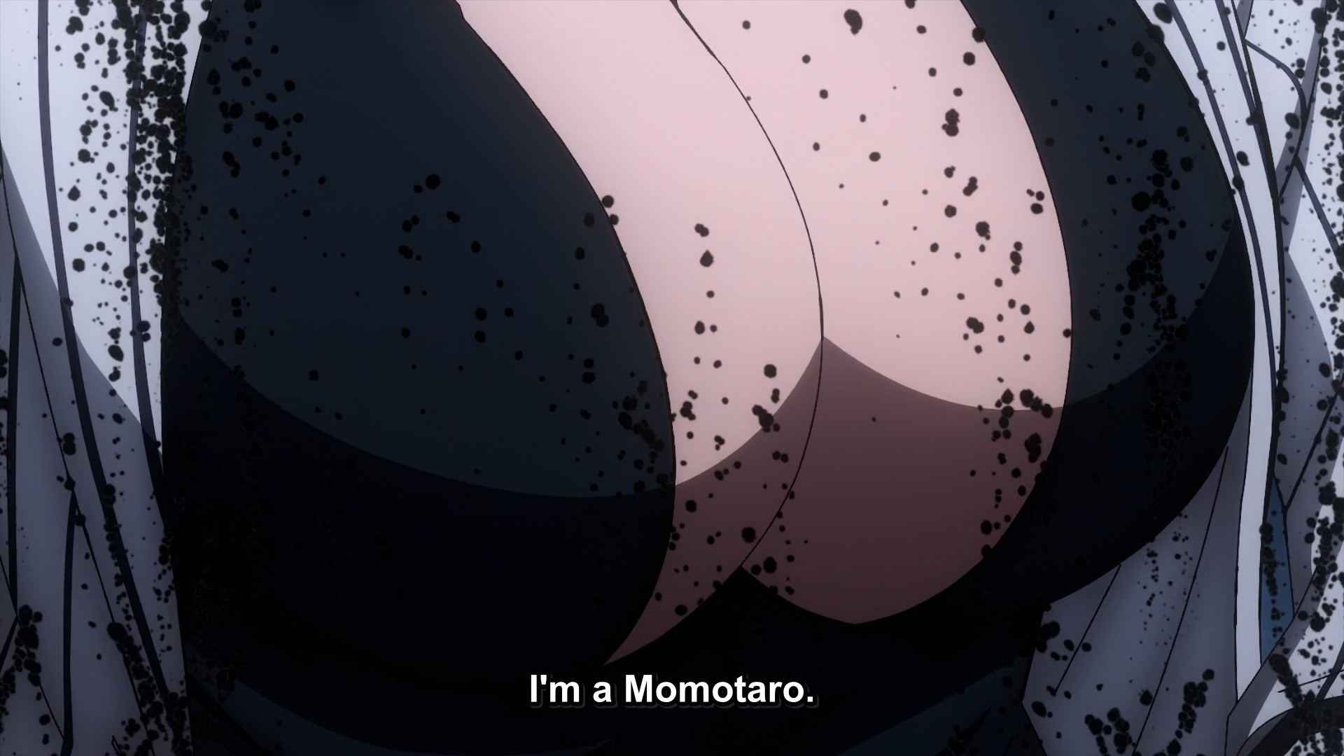 Speaking of Homare, she finally gets to be useful by using her blood golem to trigger an earthquake — something about evacuating tourists in the area. We then get to see Jin and Ikari square off against that Momotaro with breasts bigger than her own head. And by square off, I really mean mostly staring at each other until reinforcements arrive. This prompts the Momotaro to shed her jacket so we can get an even closer look at her cleavage. Again, this show is so unserious.