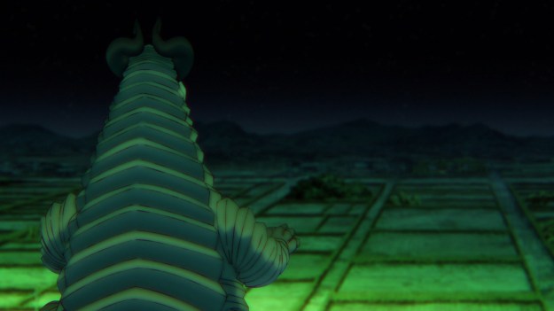 The kaiju ultimately proves to be too big for any of the kids to handle. Luckily, it doesn’t take long for Okarun to cook up a solution. He’s been doing that a lot this season. First, he encouraged Momo to escape the sandworm pit, which allowed her to come up with a plan to flush the worm out. It also allowed him to “handle” Evil Eye. The execution was a little off, but hey, the heart was there. Then, Okarun ultimately proved that he was the only person who could tame Evil Eye for good. And now, he crucially notices that the nanoskin and the power of imagination might just be the trick to beating the kaiju. This is major character development for Okarun, who relied heavily on Momo in the first season.