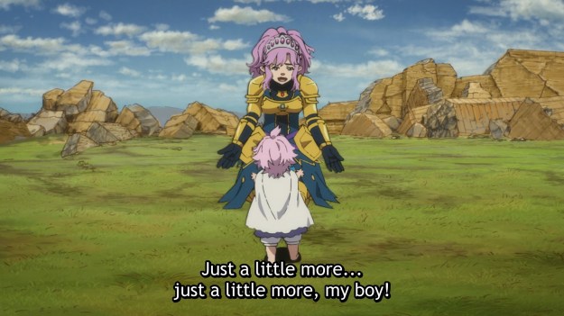 Everything after that is a rather perfunctory denouement. Klen lets Luna return to his mother on the boy’s own feet. Technically, the child had its first steps in the forge, but shhhh. I’m told children will have all kinds of “firsts” in daycare — first walk, first word, etc. — but this is where white lies come in handy. T’ala doesn’t need to know she missed out. Anyway, Rhode tells both armies that Drel has fallen, so everyone can stop fighting. Oh yeah, there are, like, other people involved in this war. Somehow, they don’t matter at all. It’s also really, really nice of the invading army to just slump their shoulders and fuck off without any pushback. Oh, our general’s dead? I wonder what’s for dinner… Vordin only rears its ugly head in the form of a lizard, which proceeds to spew some vague shit about how Klen will rue this day. We still don’t know much about anything. Toah? Shrug. Legend of heroes? Isn’t that an overrated but still solid JRPG series? The fate of true humans? Beats me… and pretty much every character in this show as well. Last but not least, the new queen dowager offers our heroes any gift they desire, so Klen decides to stick around as Luna’s tutor. We get a glimpse of Alicia’s new look, but Nell is nowhere to be found in the post credit scene. I wonder where she is now. Maybe employed as Luna’s babysitter or whatever.