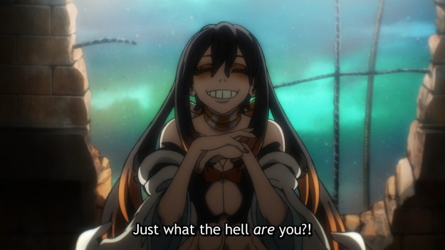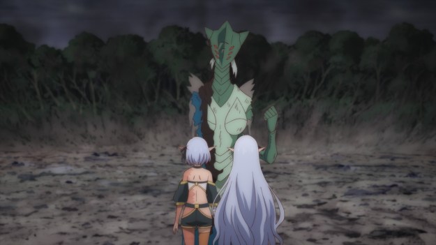 Anyway, this would be a weird place for the series to end, so I assume there’s another episode next week. But let’s do some final thoughts, ’cause fuck it. I obviously think this show is trash. Takuto and Atou bill themselves as evil characters, but I have yet to see any evil being done. Even when the elf twins rip their enemies apart, they’re doing it against an invading army. It’s not that I revel in immorality, but if you want a show about gray protagonists engaging in nation-building and subduing their enemies, Overlord is sitting right there. I don’t particularly like Overlord either, but at least Ainz and friends can be real bastards at times. I’m not exactly sure what Mynoghra brings to the table other than mixing genres, a potentially interesting experiment that has thus far been completely wasted. Oh no, JRPG mechanics means a bug I just met is now dead. Boo hoo. The story should’ve introduced Isla way earlier. If Takuto had summoned her around, say, the third episode and steadily developed her bond with Atou and (later) the twins, maybe I would feel a thing or two from her death. But as it currently stands, I can only shrug and move on.