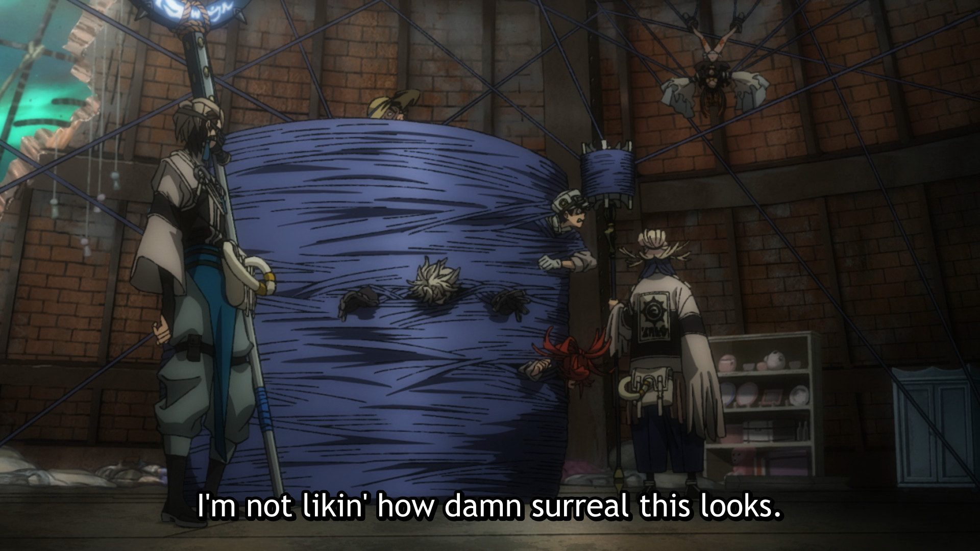 Geez, what an uncomfortable episode. Thanks to Tamsy’s ability to restrain people and Remlin’s painted spells, the Cleaners don’t waste any time subduing their mind-controlled friends. It also turns out Enjin has been playing possum this entire time, so he manages to sneak up on Amo and swipe her precious item. She thus has no choice but to surrender. Fight’s over, right? Unfortunately, Rudo snaps and proceeds to beat the living shit out of the girl. He gets quite a few hits off too before anyone even bothers to restrain him, so I’m kinda questioning the group’s collective judgment. Boohoo, the girl made a lot of them relive a deeply personal loss. Part of being an adult is making the right decision regardless of your emotions.