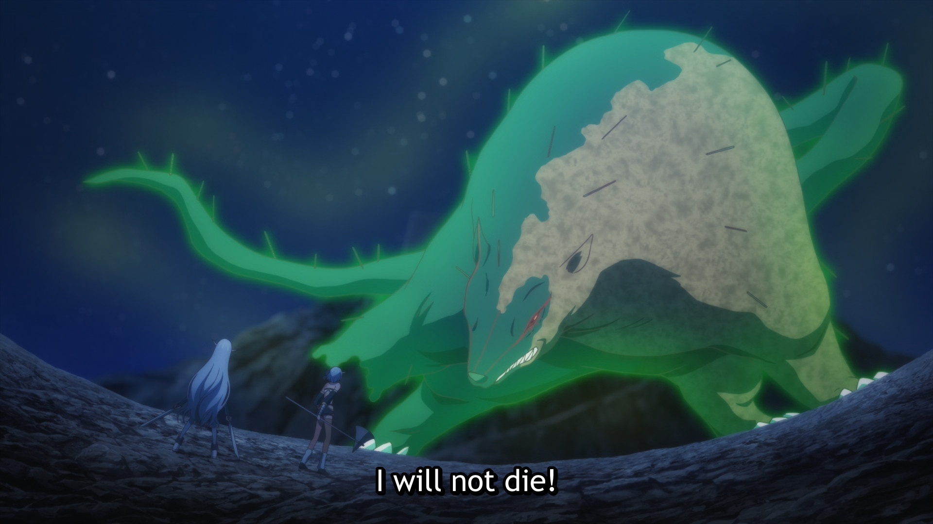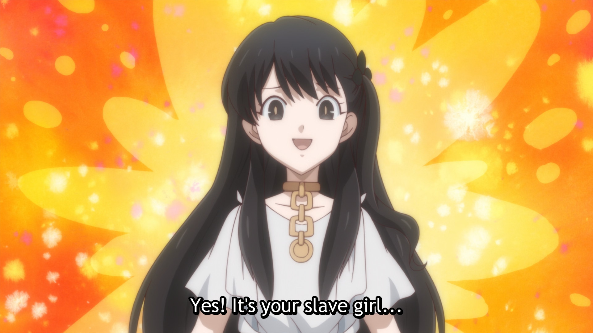 Oh lord, there’s one more episode. I’m not interested in dragging this out, so we’ll just do this quick and dirty. The enraged twins were about to destroy the JRPG demon lord (who kinda looks like a shrew?) as part of their revenge, but some dude with a weird Slenderman-esque profile suddenly shows up outta nowhere and steals the kill. He’s pretty much another isekai protagonist, so he naturally has a slave girl. Well, I guess that’s a pretty common isekai trope. Gotta give the show credit for that small bit of self-awareness at least.