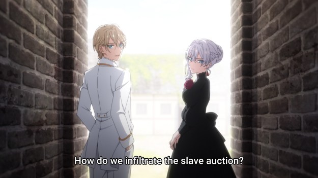 The second episode leaves us with a bit of a cliffhanger: Scarlet, Julius, and Nanaka are prepared to crash a slave auction and expose the evil prime minister. Along the way, I’m sure there will be plenty of people for our heroine to punch. But is that it? Are we just going to watch her punch all of her foes for an entire season? Look, I’m all for rooting out corruption, but at the end of the day, this is still a society with a clear dividing line between the rich and poor, the nobility and the commons. Yeah, it’s cathartic to punch out haughty, arrogant nobles, but it feels a bit hollow when you still bend the knee to the king. If the “moral” of the story is that we can leave the existing problematic power structures in place — all we gotta do is root out the bad eggs — then that’s the most milquetoast, liberal answer to society’s problems. When Scarlet asks Julius why he’s tagging along on her trip to the slums, he gives this PR-trained answer about how he wants to craft a utopia when he ascends to the throne. He can only do that, he contends, by seeing his kingdom with his own eyes. Well, if you truly want a utopia, you could start by not seeing yourself as the future king. Just sayin’. I’m fine if Scarlet falls in love with him one day, but maybe he deserves a punch too.