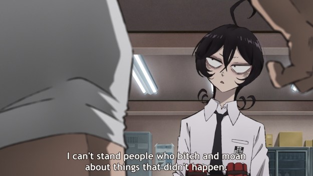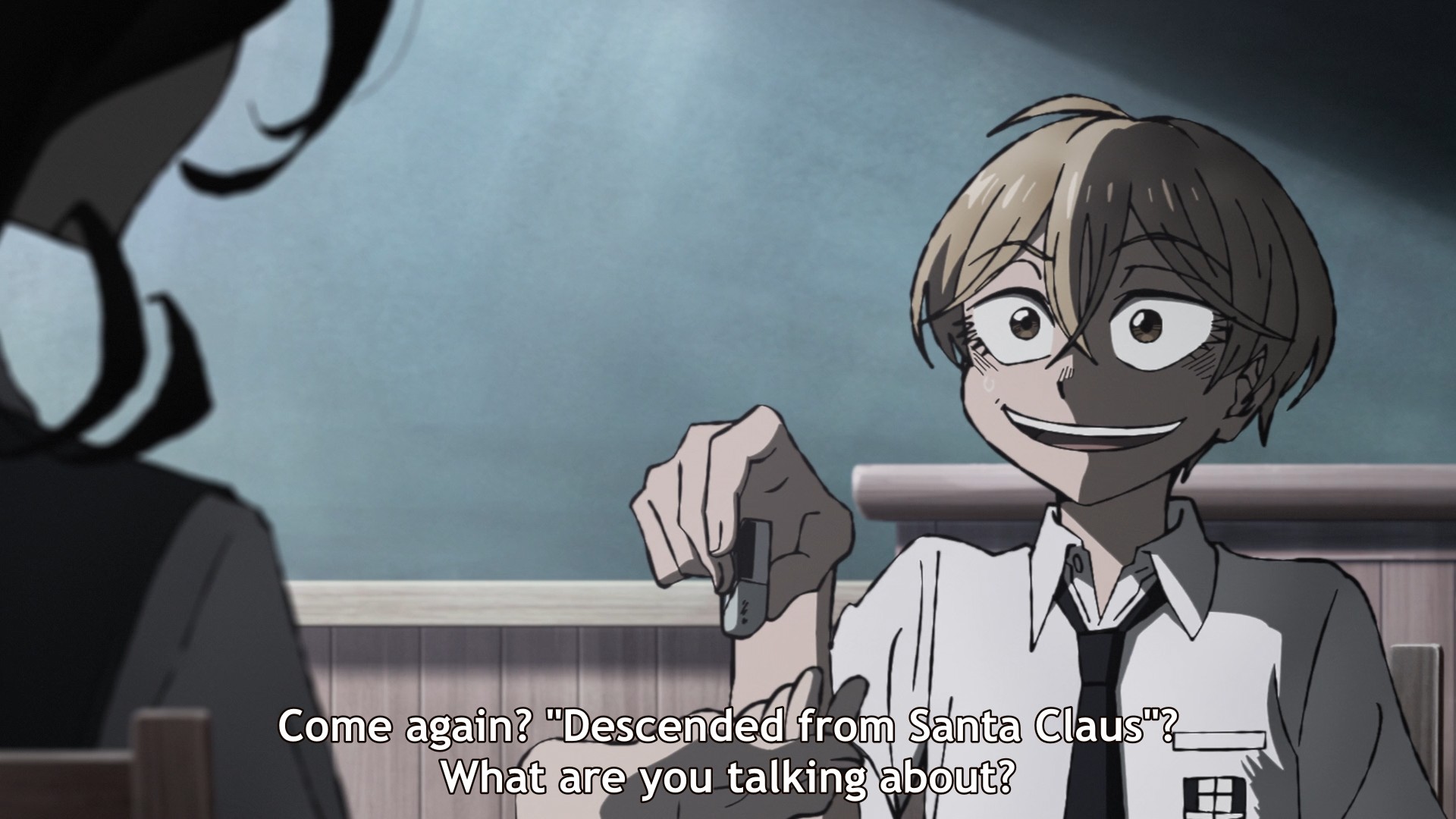 But that’s our show. Santa’s a hulking specimen of a man, and he’s going to fulfill his promise to Fuyumura by hopefully locating Ono. Because I can’t bear to see kids die, I hope the bestie is still alive. As for who ends up with whom, I don’t really care about that right now. So far, I’m not particularly fond of either character. I’m also not sure what to make of the smirking boy at the very end of the episode. And how’s the animation? It has some of Science SARU’s flair, but it’s obviously not as flashy as some of their bigger projects. It’s still pretty entertaining to watch from a visual standpoint, but I don’t think this show will blow me away if the first episode is anything to go by. To sum things up, this is not the best thing I’ve watched this week, but it’s certainly… unique.