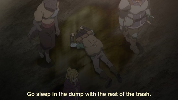 Anyway, the party eventually comes to the obviously erroneous conclusion that Light’s gift is useless, so they decide to dispose of him. For some reason, this needs to take place within the Abyss, the most dangerous dungeon in all the lands. Why? Beats me. They make it sound like this murder needs an elaborate cover-up, but the way humans are treated in this universe, it’s not like anyone would care if a random kid shows up dead in the gutter one day. Sadly, actual people die like this all the time, and if they’re homeless or a member of some undesired group in society, few people will bat an eye.