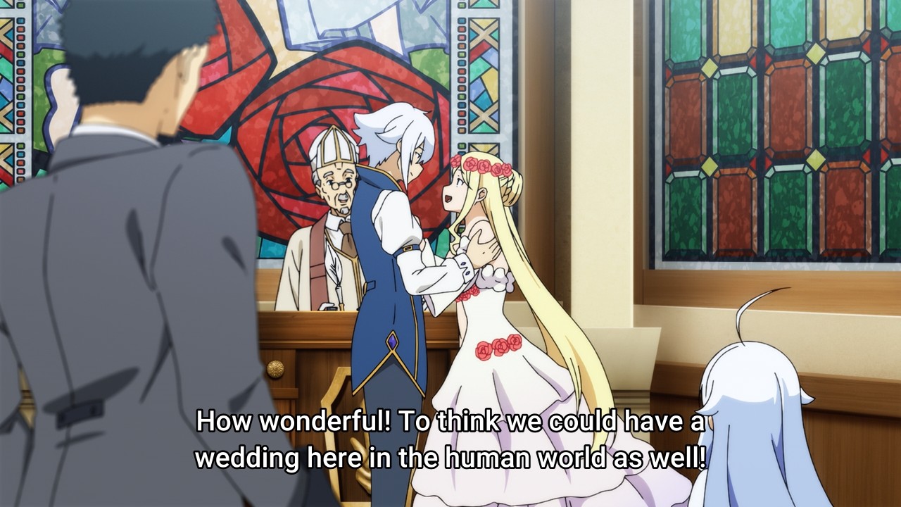 I also find it funny how this first episode is all about the father. We’ve barely even talked about Ellen, the half-spirit daughter who has the ability to conjure up anything she wants. How? Because she was a Japanese scientist in her previous life, so uh… that means she’s got expert knowledge on the periodic table. Yeah, sure, that makes sense. But like I said, she plays a rather supportive role at the moment. First, she scolds her father for avoiding his family. Fair? Eh. I don’t really agree, but whatever. I can’t talk ’cause I’m not really family-oriented to begin with. Ellen then makes her parents a pair of rings to celebrate their second wedding. But after that, it’s back to the Rovel show, who returns home to find an obese Agiel. She thinks he’s here to finally marry her. Once again, beauty is normative, i.e. if you’re ugly, you might as well be evil.