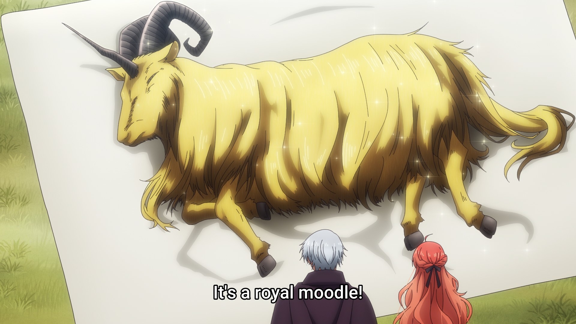 Well, Aristide certainly doesn’t waste any time. With encouragement from his brother, the literal crown prince, our “blood-mad” duke has already sent a formal request for Melphy’s hand in marriage. This is the first time he’s ever met anyone he likes, so he intends to strike while the iron is hot. At first, both Melphy and her father are dubious of Aristide’s intentions, and that’s perfectly understandable. Who proposes after one meeting? Don’t you guys need to go through some kind of courtship first? Before her father can even respond to Astride’s letter, however, he shows up with a fleet of dragons and a royal, uh… moodle. Meh, it just looks like a shaggy goat. Nevertheless, Melphy is charmed by Astride’s earnestness (and the still living monster), so she intends to accept the proposal.