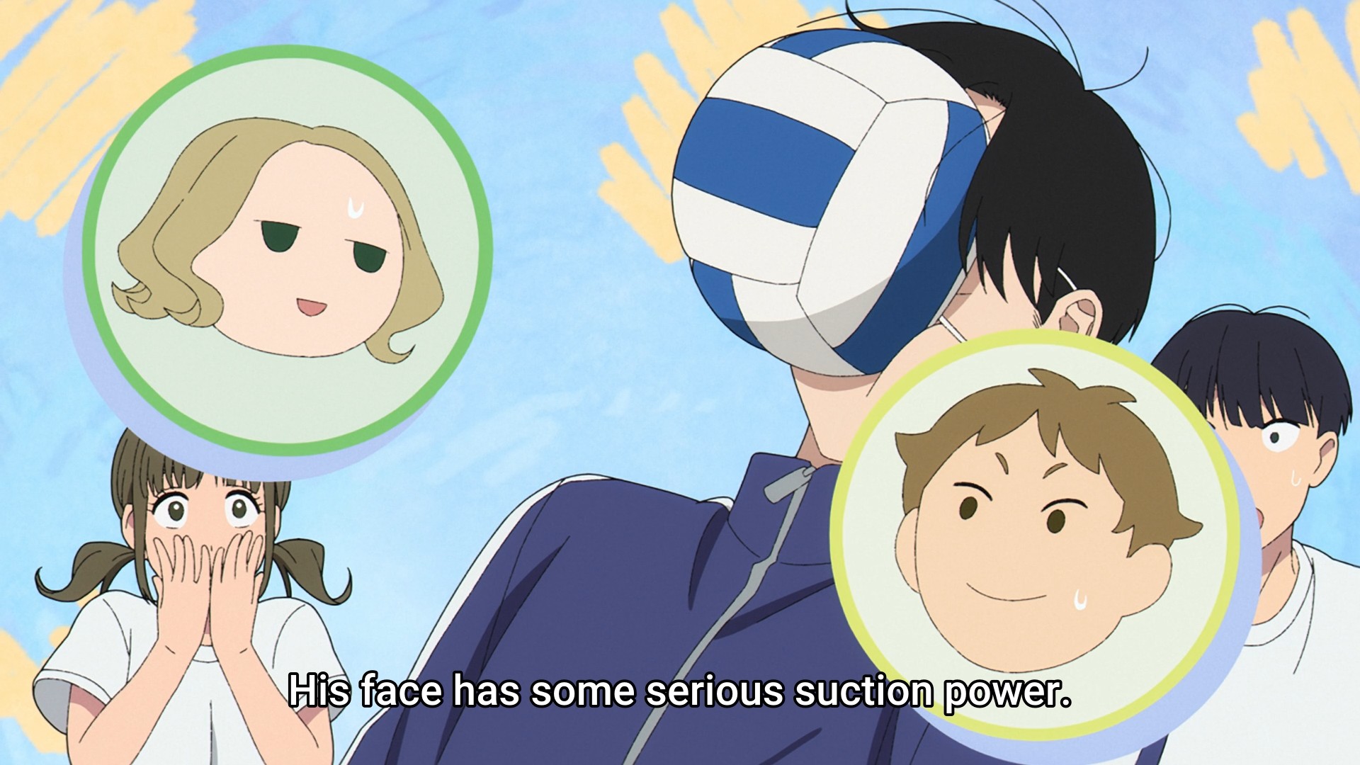 Well, the third episode shows us that he isn’t entirely hapless. He can actually throw a ball pretty hard. I hesitate to say that he’s good at dodgeball, though. He only avoids elimination because getting hit in the face somehow doesn’t count. Anyway, our girl finds him cool, but then she starts getting insecure when he doesn’t react to her the same way other boys react to other girls. Once again, it’s really difficult for a lot of guys to tell if girls are into them.