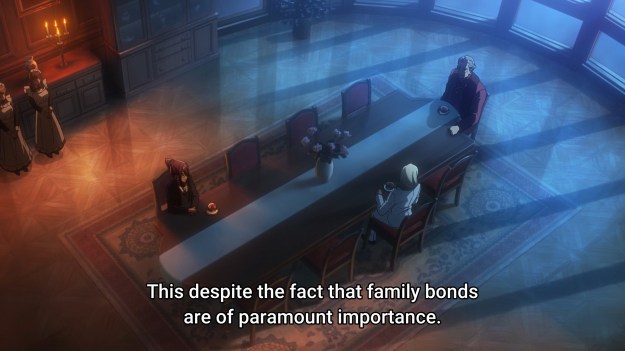 Suddenly, we are introduced to two half siblings from a local mafia family. Well, it used to be a family. They used to have a lot of people gathered ’round the dinner table. But thanks to a brutal power struggle, we’re down to just Fides and Kalcrom. Wait, I see two kids in this photo. And a dog. Don’t tell me those three were killed as well? Nevertheless, even after seeing like 90 of his family die, the patriarch still insists that “family” is important. As a result, the remaining half siblings need to find themselves a partner. You can already tell where this is going. The woman will lock onto Akira, and the man will try to pursue Yugure. But there’s a twist! Y’see, Fides is actually in love with… lemme check my notes… her half brother?!