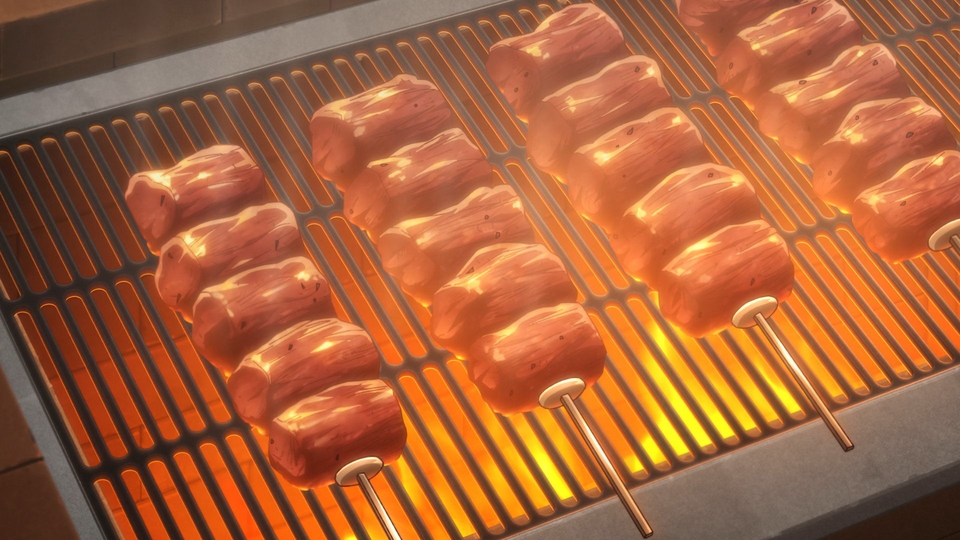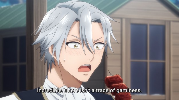 I think a problem I have with this anime is that the seemingly taboo monster meat doesn’t actually look gross. After Melphy works her magic, the monster meat looks positively normal. And sure, maybe that’s the point the show is trying to make, but even granting that, the message isn’t as salient as it could be. Starving people having to eat less than appealing foodstuff is nothing new. For instance, some cultures have to turn to bugs and other creepy crawlies as sources of cheap protein. Therein lies the actual problem: can you get past the ick factor? But in this show, the “gross” food looks like well-marbled, succulent red meat. Yes, I know the in-universe people can’t stand it. I know the people her mom saved still feel the need to lie about what they ate in order to survive. But I just wish the food actually looked gross. It would drive the point home better. Right now, I just see a bunch of snobs turning their nose at steak skewers.