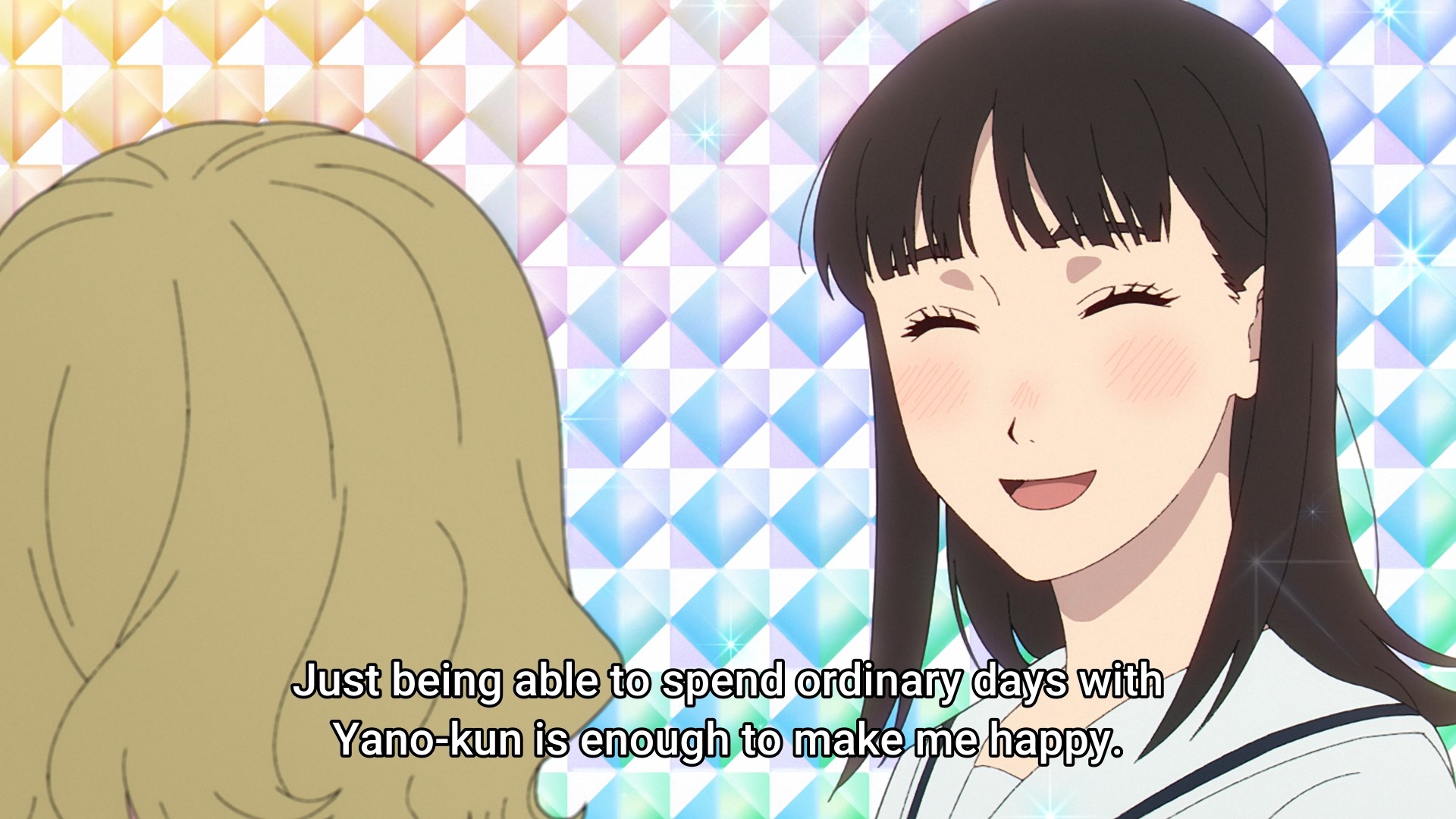 Kiyoko is getting complacent, so we need a catalyst to push things forward. Enter Hashiba, a strait-laced student very much like Kiyoko. They both like the same drinks, they both attend after school committee meetings, they both have to care for their younger siblings, they both text the same way, blah blah blah. So naturally, he likes her. But this isn’t the type of show to have bitter love rivals or over-the-top melodrama, so he already knows he doesn’t have a chance. He already knows she likes Yano. He just wanted to confess his feelings to her in order to get it off his chest. How utterly pragmatic of him. Very befitting of a strait-laced student.