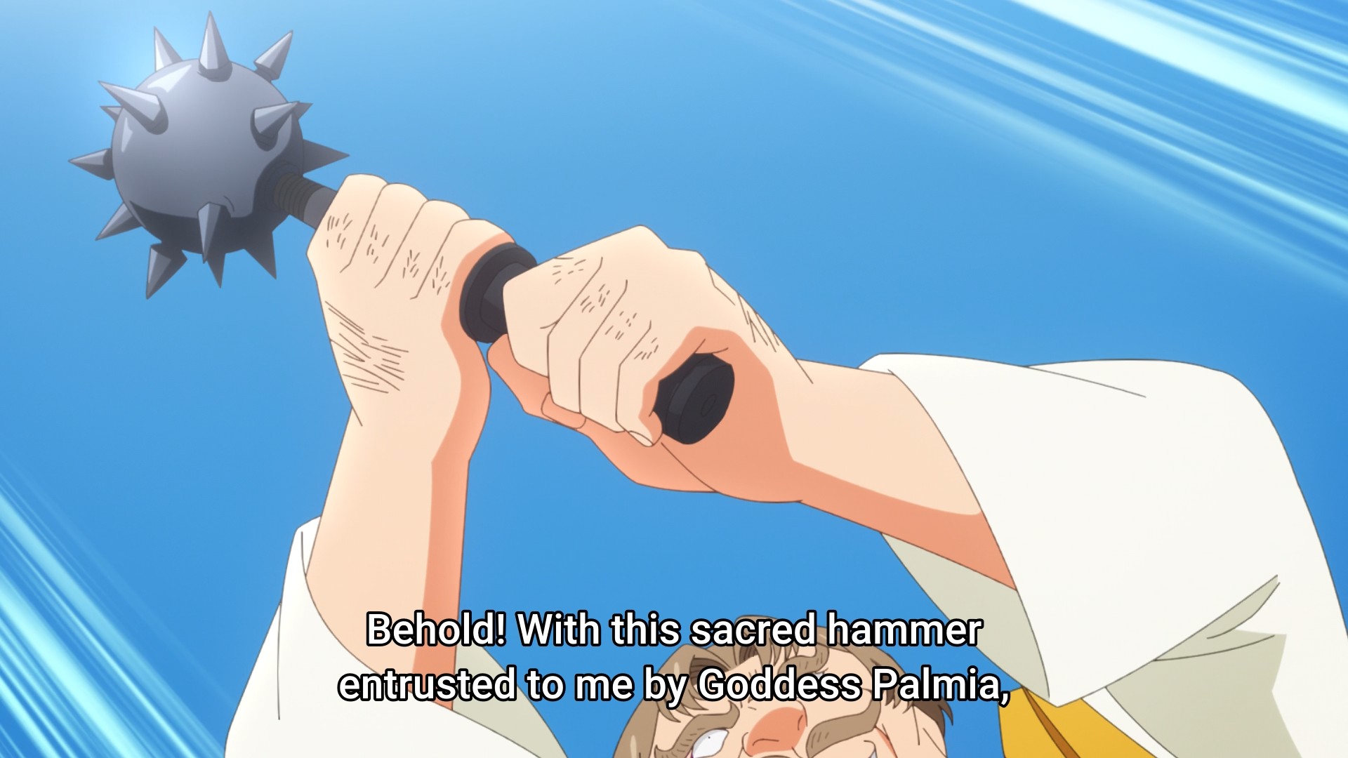 When Dios, some brash knight, shows up and starts flirting with Scarlet, Julius immediately wears a serious look on his face and becomes possessive. Maybe that’s what he needs in order to get his act together: an actual rival. Since Scarlet won’t draw any boundary with the prince, he needs another threat to their relationship. At the moment, he clearly doesn’t think that he could possibly lose her to anyone else, so he’s content to be complacent. Hell, Saint Diana dislikes him, right? Why don’t we let her steal Scarlet away. Speaking of which, it’s never quite clear to me whether or not religious figures like saints are allowed to partake in romance and relationships in fiction. It feels like they shouldn’t, but I’ve seen enough anime to tell me otherwise.