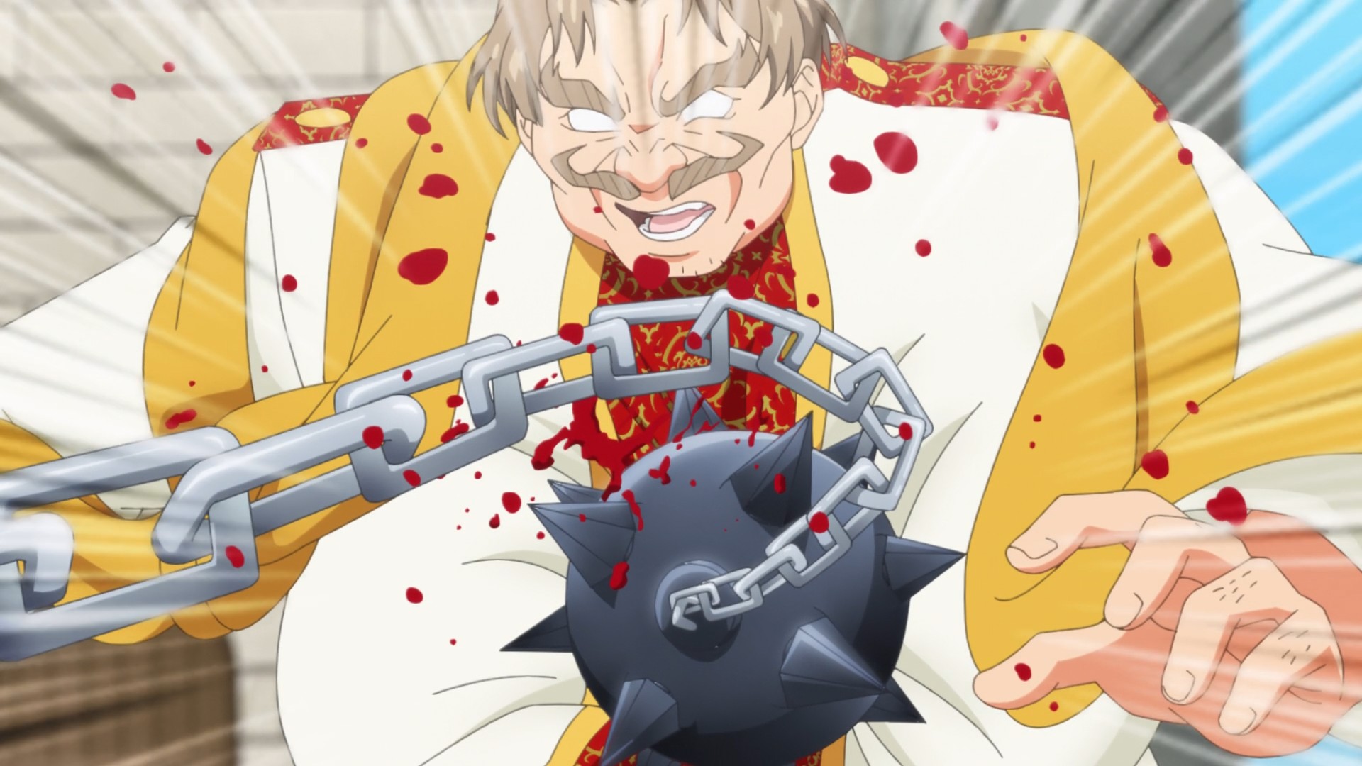 Well, you can’t keep Scarlet from what she relishes most: punching pigs. As a result, a mere Holy Gate has no chance of holding her back. Her blessing makes quick work of the massive wooden doors before her. Somehow, the bad guys only now realize that they’re dealing with the Scarlet. I find their cluelessness here somewhat odd, because what other woman or man could possibly pose a similar threat? We’ve seen no one with her level of physical prowess. There’s no one even close to her. Aflame can take a lot of punishment, but that’s about it. Anyways, “the Ogre” gets his just desert not once but twice. All in a day’s work.