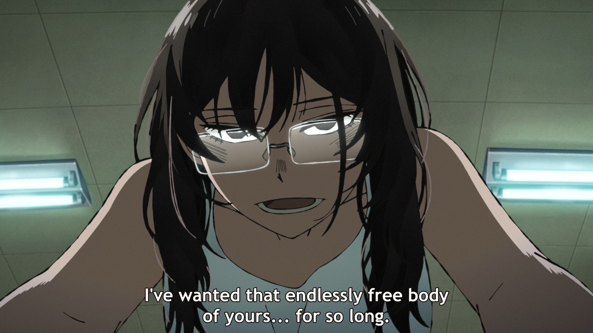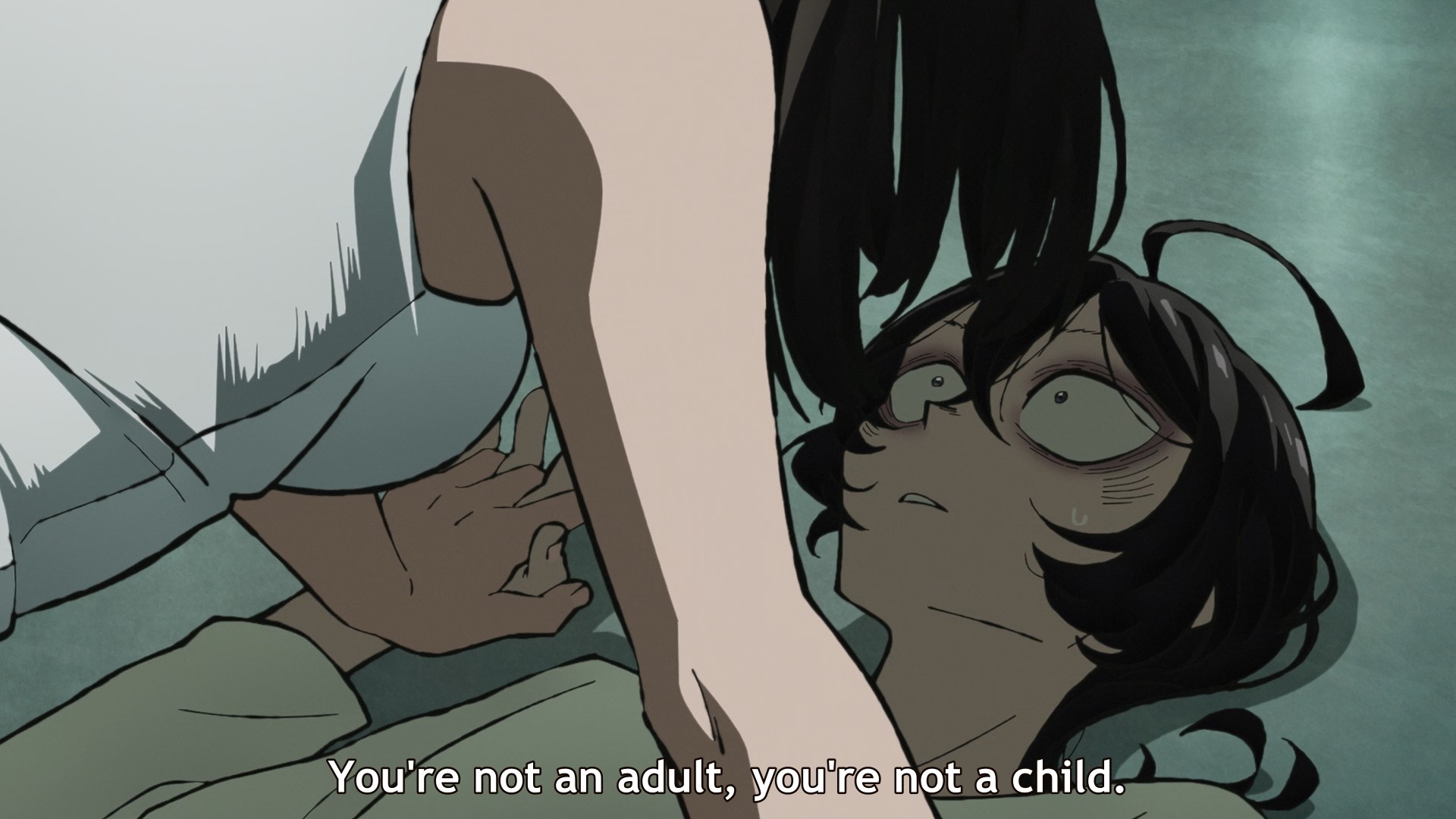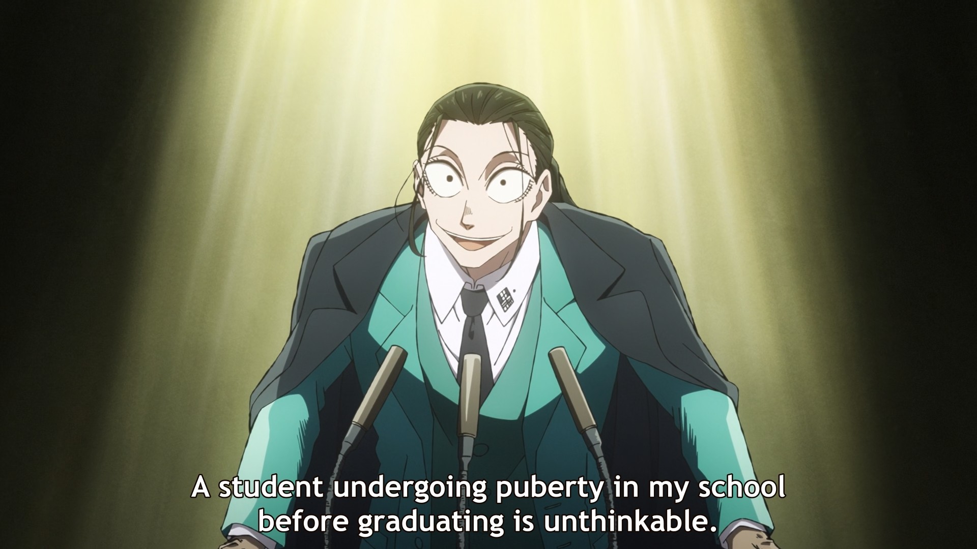So there’s no real mystery with Ono. Puberty simply kicked in, and as a result, she feared what that sick headmaster might do to her in this weird, twisted world that they inhabit. Fair enough. I can understand her actions from that perspective. Nevertheless, I’ve got some… conflicting thoughts about these revelations. First, this rather seems anticlimactic. I’m sorry, but that’s just how I feel. No weird conspiracy. No bizarre kidnapping. She didn’t get sent to that dark and scary place. Y’know, the punishment Oshibu had threatened Amaya with back in the second episode. Nah, the reality is that she simply went through puberty, so she ran away because this society has an unhealthy relationship with youthfulness and aging.