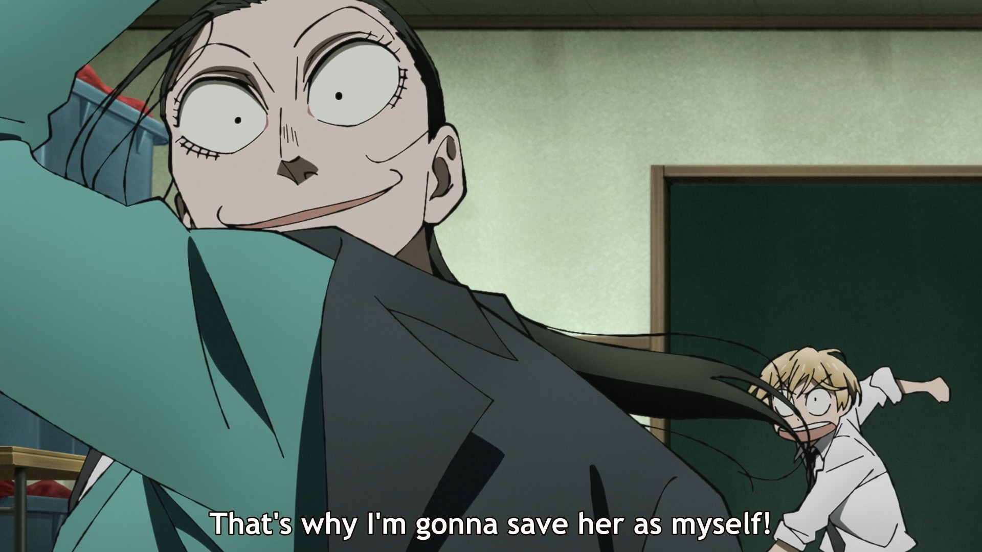 When we last left off, Ono finally revealed herself to Fuyumura. She even explained how she ran away because she had undergone puberty, so she feared reprisal from Oshibu. Unfortunately, the man is conveniently here to apprehend the poor girl. I need to reiterate how messed up it is for the creepy headmaster to refer to Ono as “an adult intruder.” It is sick, actually. It is utterly sick to look at a pubescent child and see an adult. Unfortunately, Fuyumura’s response doesn’t help either. I mean, sure, I get what she’s trying to say, i.e. even though there’s a clear difference between a body that has undergone puberty and a body that hasn’t, that still doesn’t make Ono an adult. I agree. But it still feels wrong to say that she has “an adult body.” In doing so, it feels like we’re trying to meet Oshibu on his level. In reality, it doesn’t matter what body Ono has. She could literally have a 150 year old’s body and it still wouldn’t matter. In fact, we should stop talking about our physical bodies altogether. With Ono’s life experiences, her knowledge, her memories, and her current mentality, she is clearly and utterly a child.