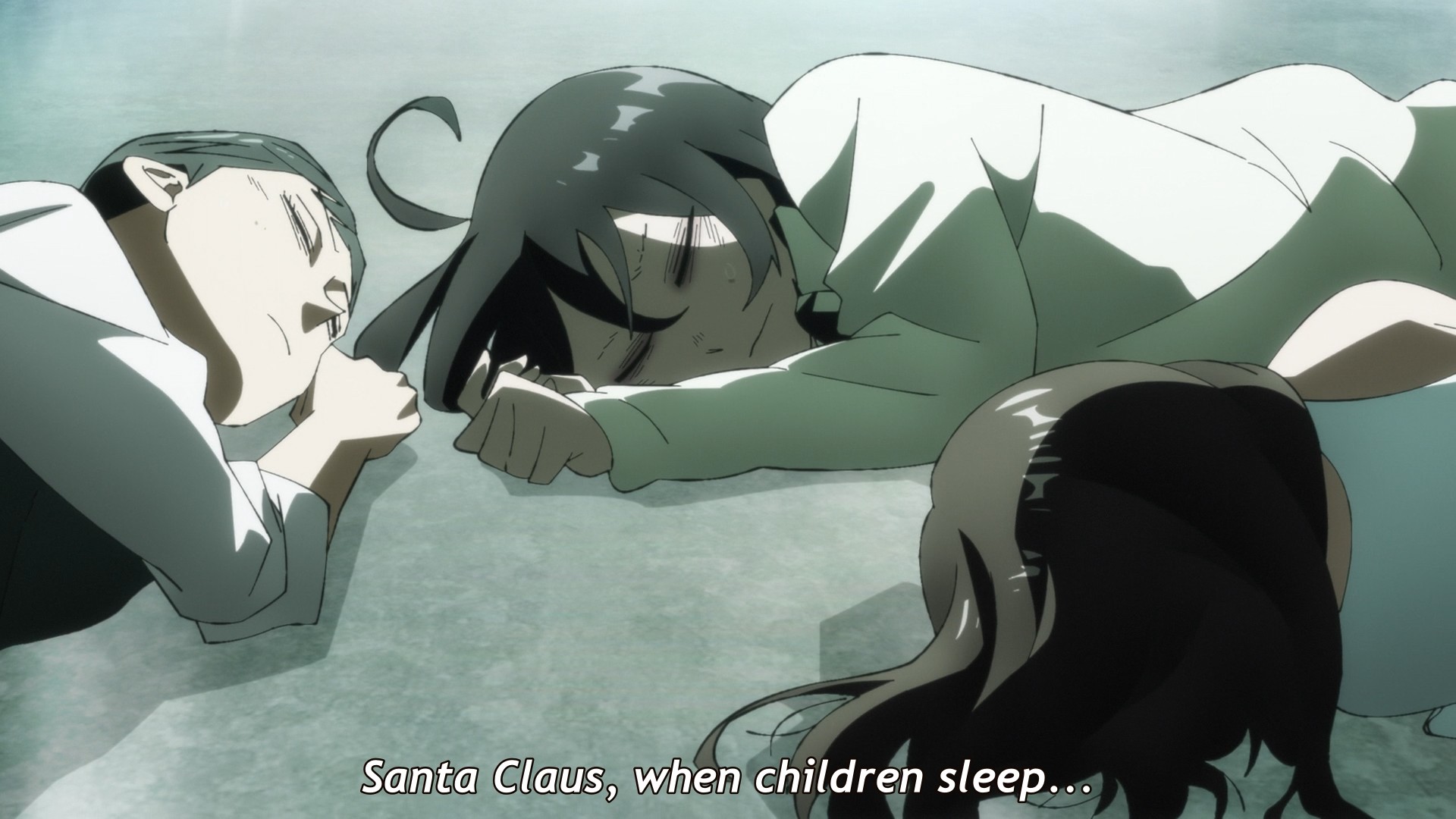 In the aftermath, there’s a palpable distance between Fuyumura and Ono, and the future of their relationship is murky and unclear. I’m not surprised. Ono is coming on way too strong, so their dynamic has inexorably changed. This is probably her first love, so she’s just chomping at the bit to dive right in. As a result, Ono is not giving Fuyumura time to adapt. Maybe Fuyumura can eventually love her back, maybe she can’t. But it won’t do Ono any favors to push her best friend before the latter is ready. When you have someone who keeps flinging themselves at you, it just feels weird. Doubly so when they’re supposed to be your friend. Where will the story go from here? Even though childish jealousy would be perfectly understandable considering their age, I just hope this doesn’t lead to Ono doing something stupid. Like what? Like perhaps revealing Santa’s alter ego in order kill two birds with one stone: save her skin and also eliminate someone she sees as a rival for Fuyumura’s attention. I’m just spitballin’; I don’t know what Ono’s going to do. I just know I have a bad feeling.