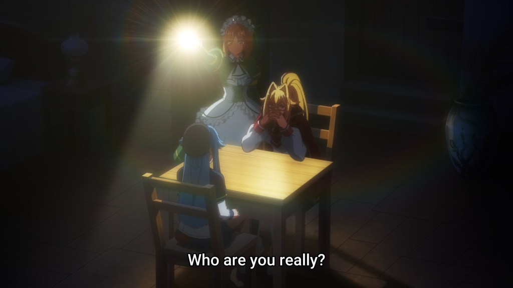 Upon hearing that Akira wants to go home, Amelia dashes out of the room in tears. He eventually goes after her and calms her down. He even confesses his love to her and everything. So what’s the ultimate goal here? He can’t stay in this world, because he’s big on family. Akira probably wants to make sure his mother and sister are okay. So the only other option is to take Amelia back with him. She’s one of those one-note love interests who cares about nothing but the MC, so she’s probably cool with this. Plus, I know plenty of isekai shows have gone down this route. Even so, I feel like it wouldn’t be safe for an elf to show up in our world. I bet she would get captured and experimented on. But hey, this is fiction so maybe they’ll just leave her alone with Akira and the two can live happily ever after. Sure.