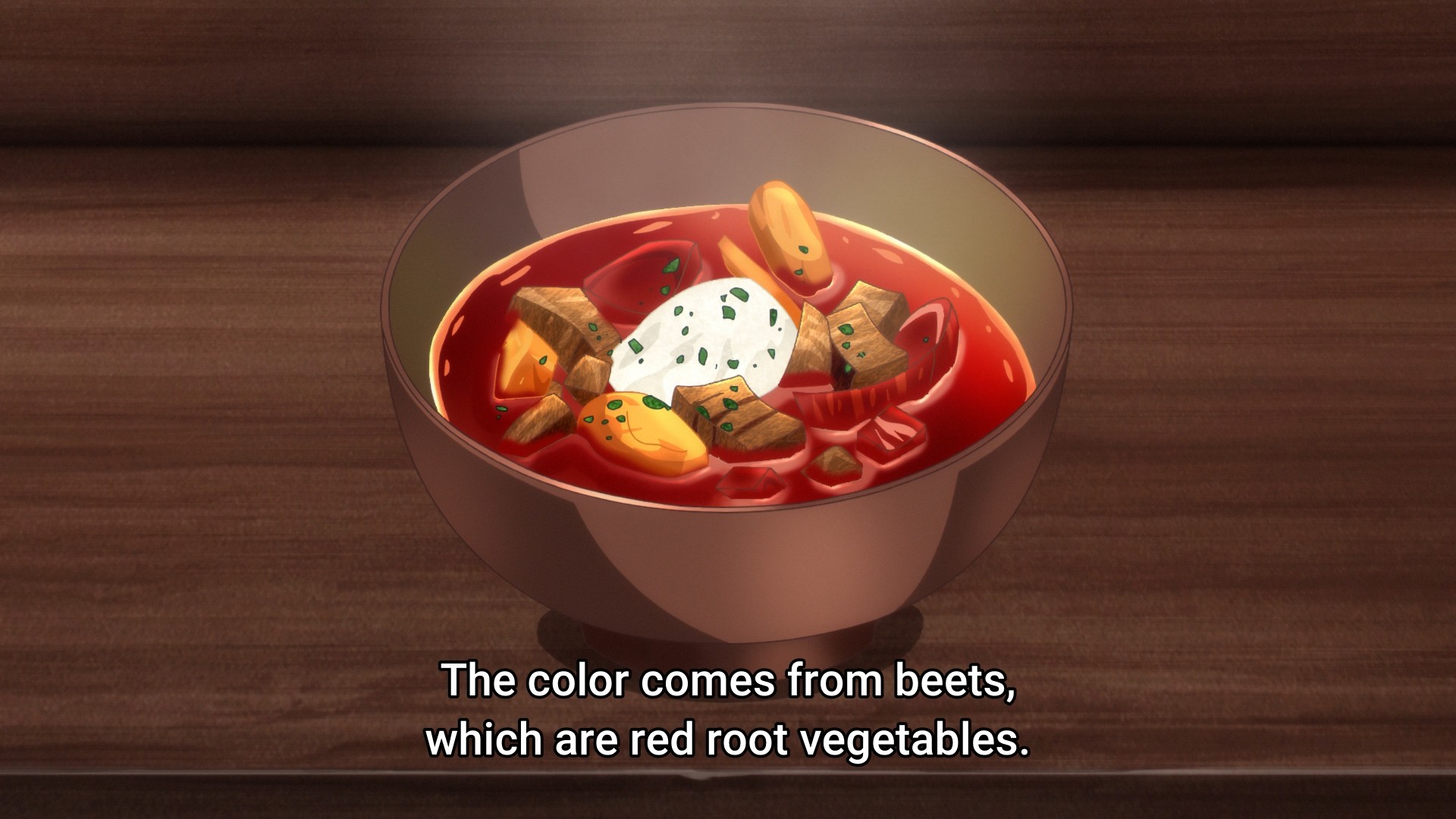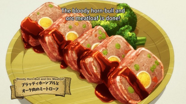 Anyways, time for the food. First, the gang eats a ton of meat skewers from a food stand. Eh, again, where are the veggies? I just think eating nothing but meat doesn’t let you actually appreciate it to its fullest. Too much of one thing will dull your tastebuds. I like to think veggies (and your drink of choice) wipe the palate clean so you can properly enjoy the next bite. Second, he makes meatloaf towards the end of the episodes. Onions, sure, but I would never put corn, peas and carrots inside the meatloaf. That’s too much. I’d rather have them on the side, untainted by all the meat juices. He then stuffs quail eggs in the loaves. Growing up, I used to eat these Asian meat buns that essentially had a big meatball on the inside. And that meatball would then have an egg in it as well. I guess this is the closest thing I’ve had to whatever Mukoda’s making? Anyway, I had to chuckle at the thought of making a rich red wine and butter jus from the drippings. That’s a very fancy way to dress up a meatloaf.