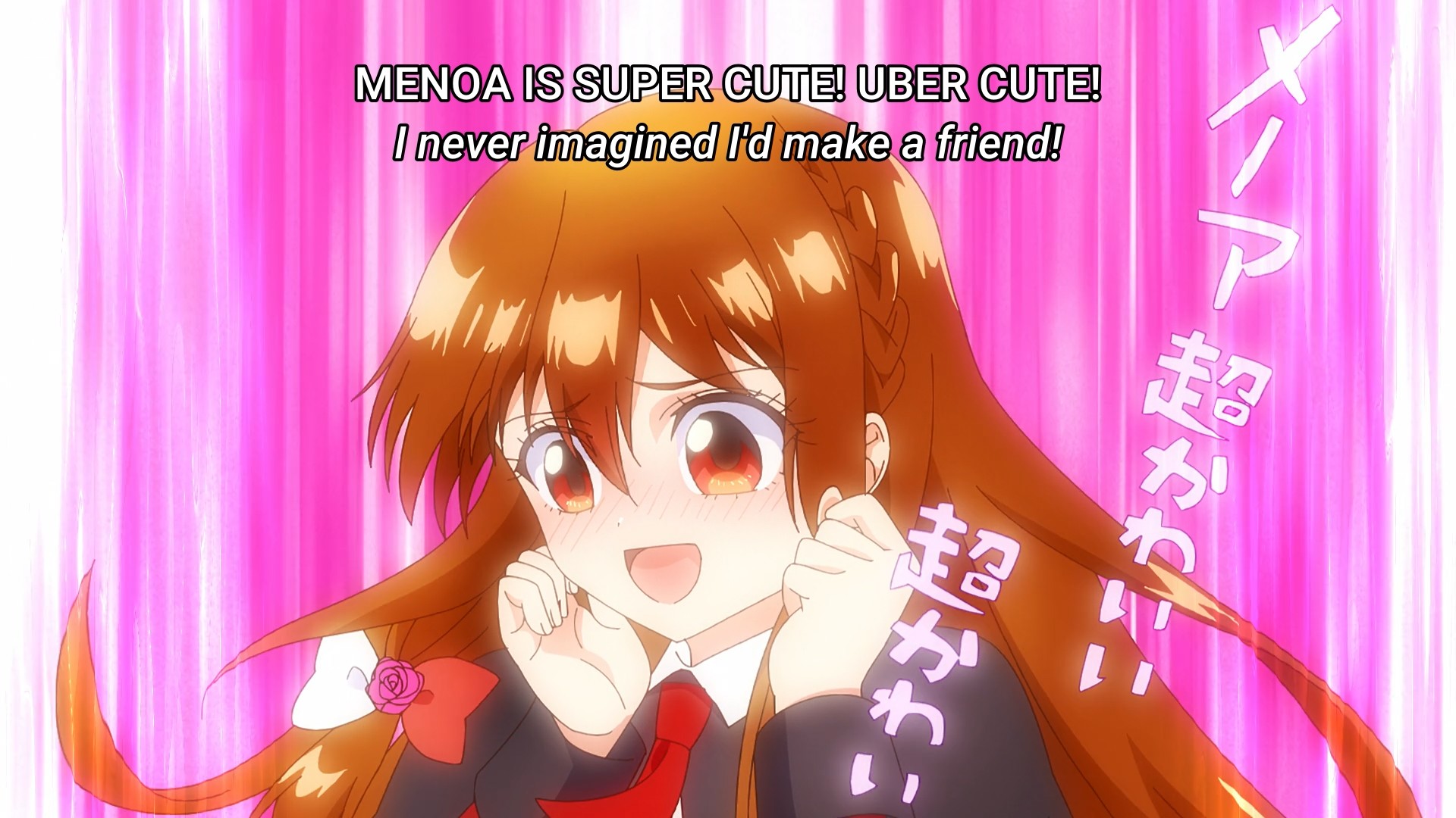 Everyone else might still hate her, but Menoa definitely appreciates Iana coming to her rescue. After all, since people are scared of crossing the villainess who tried to murder her sister, they can’t pick on Menoa anymore. The girl feels as though she has to return the favor, so she even comes to Iana’s “rescue” by mistakenly assuming that Sol is perving on her new buddy. I like it when harem leads make regular, normal friends. I like it when they’re not only interacting with their boy or girl toys. It’s like how in The Fated Princess, I’m just begging for Athanasia to befriend Jennette. So for this anime, I sincerely hope real Konoha can step out of the bubble of ideal Konoha, Ginoford, Sol, etc, and find someone that she can truly confide in. Basically, it would suck if Menoa ends up being an evil character or whatever. Unfortunately, our “villainess” seems so giddy at the idea of hanging out with Menoa that I can’t help but now be suspicious of the latter. Plus, there’s still that conspicuous jewelry she dropped. Makes me wonder now if it was truly an accident.