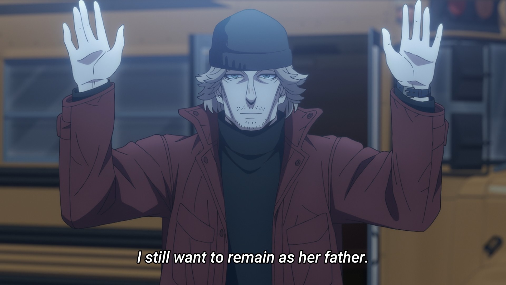 Luckily, we have Starlight Anya, who ironically serves as the voice of reason… sorta. By telling Billy that she isn’t scared of the (fake) bomb around her neck, she invokes even more of Billy’s memories of his daughter. He initially plans to free only Anya, but she resolutely fights to remain on the bus. She even takes after her father and rocks Billy to his very core by employing Loid’s own words. This leads to a series of misunderstandings where Billy suddenly does a 180. He now believes that these rich kids are somehow underfed and thus not privileged — that Ostania’s economy is somehow in the gutter and that his actions will only further widen the inequality gap. As a result, he peacefully surrenders. This is such a tonal whiplash. Like yeah, it’s kinda funny. But at the same time, he and his comrades are still going to be tortured to death once Ostania takes them into custody. So it’s like, “Haha, Anya outsmarts the silly terrorist! Everyone point and laugh!” But they’re all going to fucking die, man! Most of all, none of this will solve the root of the problem, which is that Ostania’s heavy-handed actions led to the radicalization of a formerly peaceful student movement. Hell, if anything, Ostania will probably be emboldened by this victory. And in return, even more peaceful movements will be radicalized.
