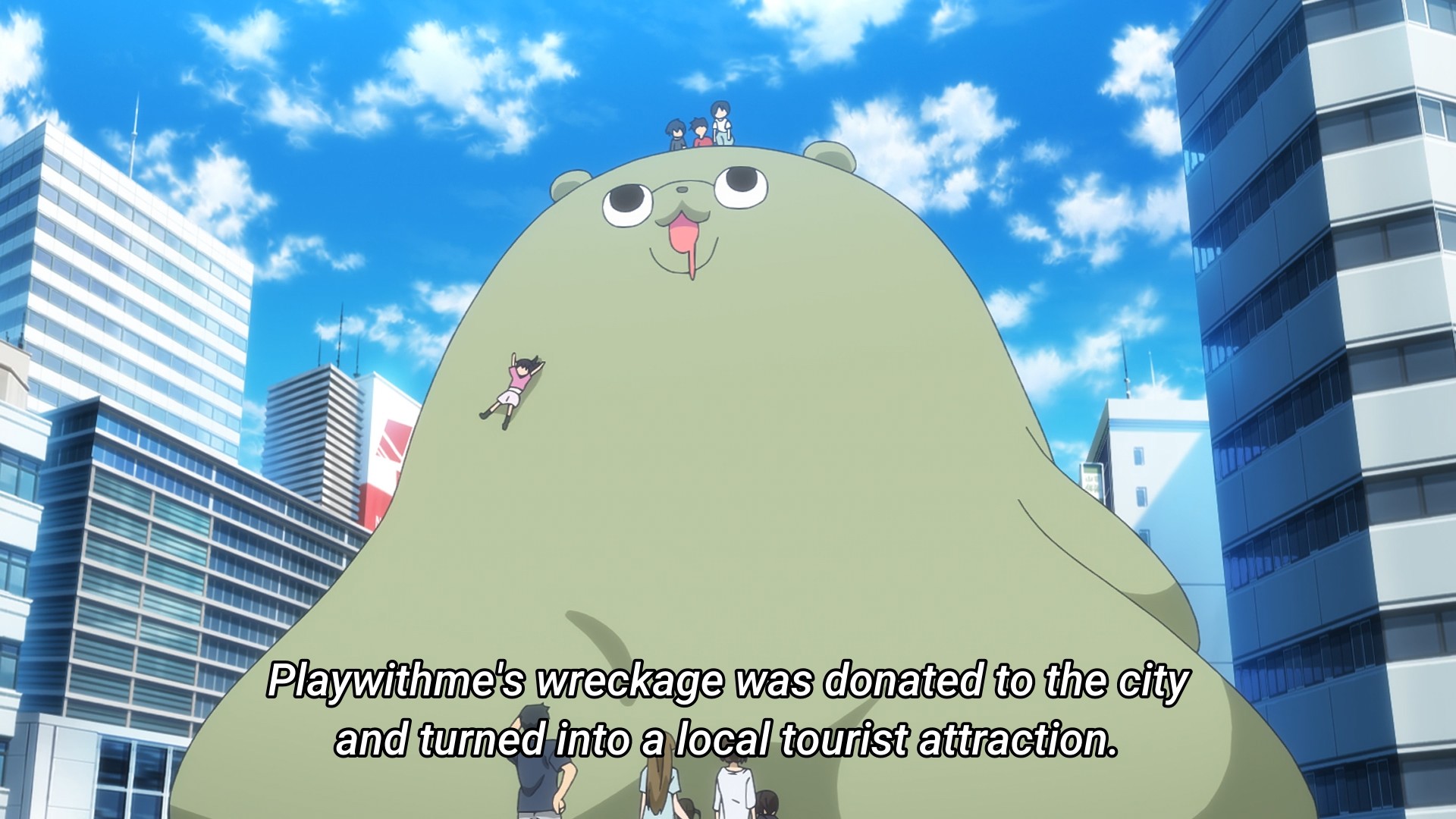 In the second half of the episode, one of Suzume’s other robots go haywire and attacks the city, so Alma and her clone bodies (controlled by Machina) have to stop it. She ultimately removes the core and leaves the giant body intact, which then becomes a kids attraction? Is that safe? Yeah, I don’t have much a reaction to this one.