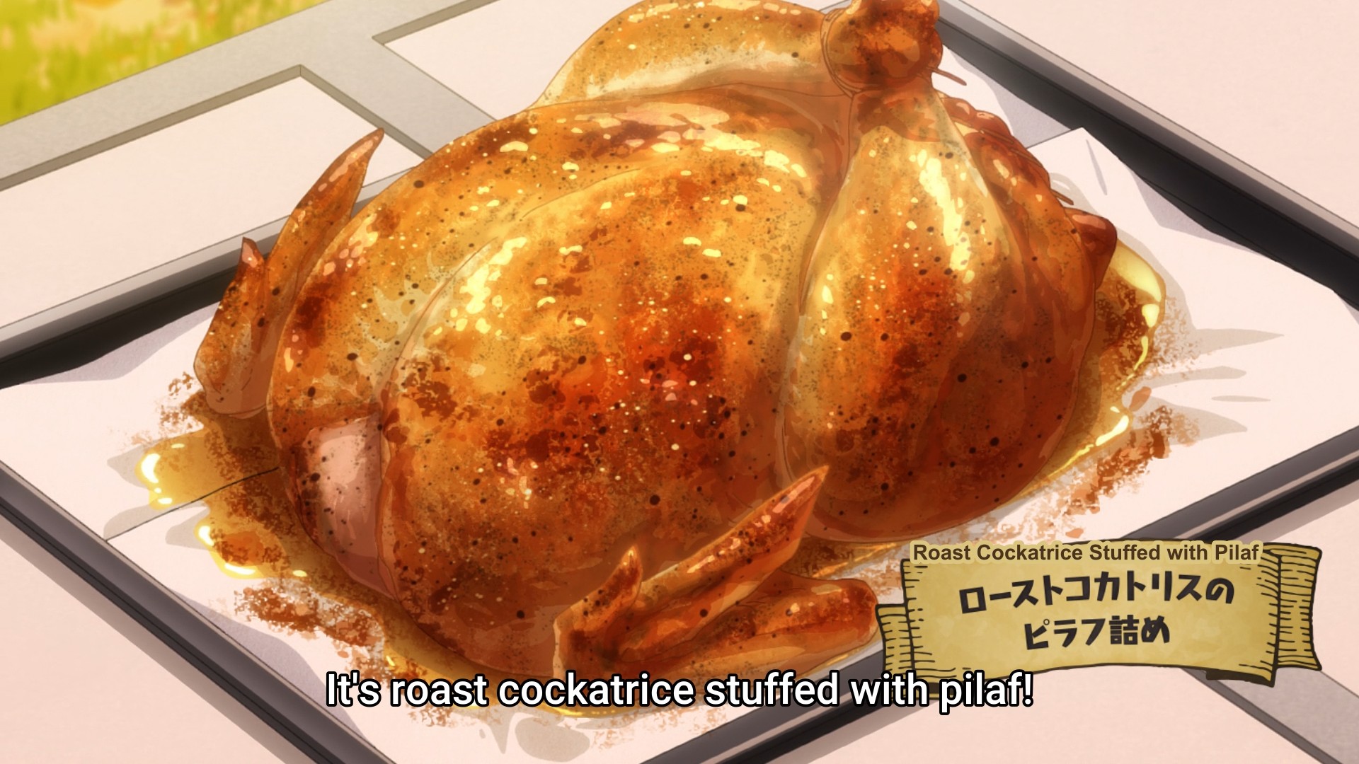 Afterwards, Melphy worries that her research will simply lead to the creation of more dangerous weapons. Her fiancé then has to remind her that they can also use the same magical energy in smaller quantities for domestic purposes, i.e. heating homes, lighting lamps, etc. And that’s it. No cooking this week, no food to judge. Just some boring, ugly-looking action and Melphy slowly solidifying the aims of her research… which she honestly should’ve nailed down a long time ago. I feel like this show peaked with the first episode and has been steadily declining ever since.