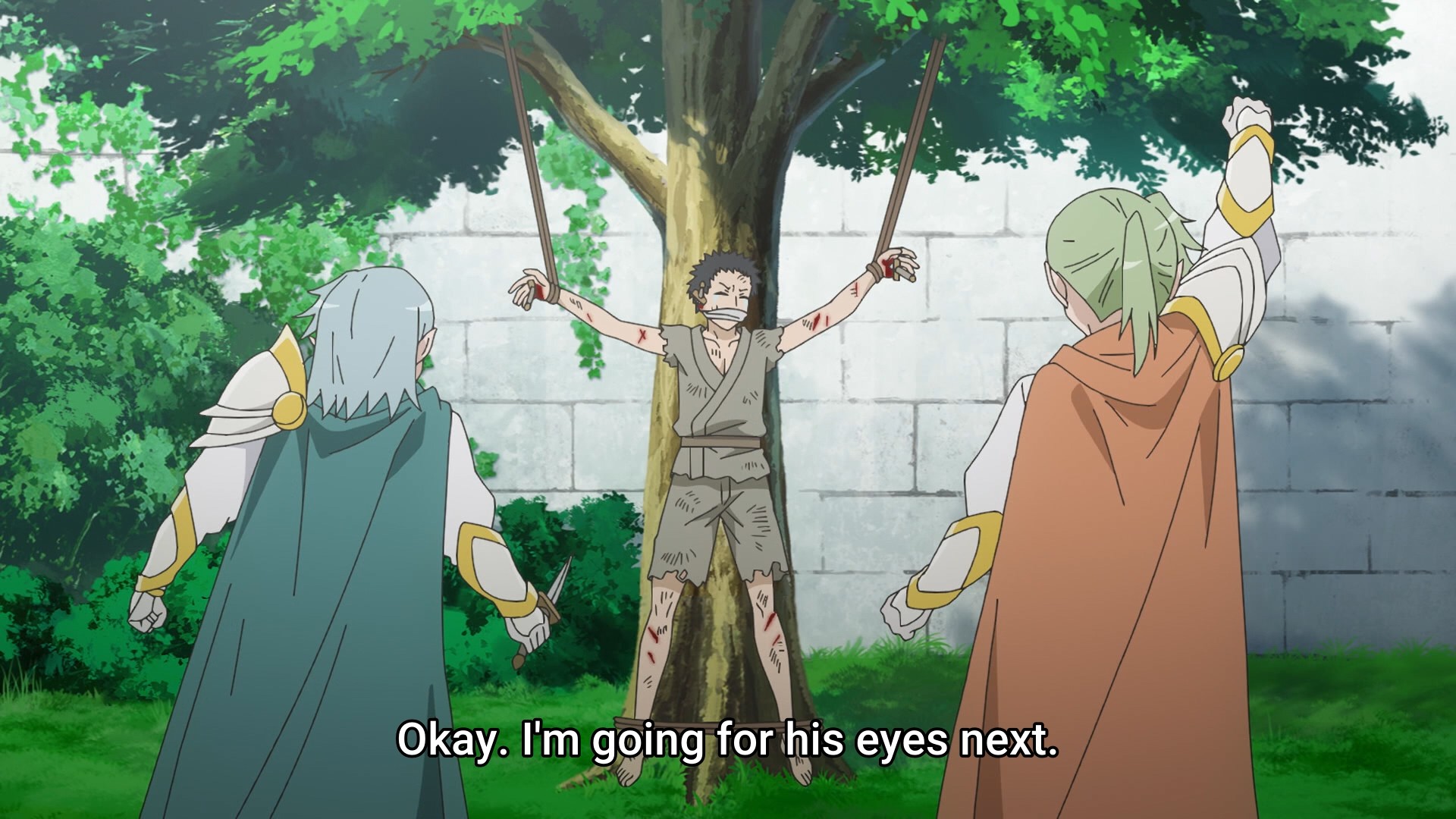 This is just a nasty world full of brutish, ugly people, and I’m not talking about their attractiveness. Male humans are tortured for amusement. Female humans are kept as sex slaves. Human children are captured and clapped in chains in order to be sold on the market. But Light isn’t bringing the bad guys to justice. This entire episode is one long setup to eventually break Sasha and the elf kingdom. They’re cruel to us, so we’ll be cruel to them in return. It’s just one unending cycle of abuse. No one comes out of this with their soul intact. Meanwhile, his underlings talk about Light as if he’s a god. It’s like they all belong to some freaky cult. The whole thing feels greasy, not too dissimilar from watching an exploitation flick.
