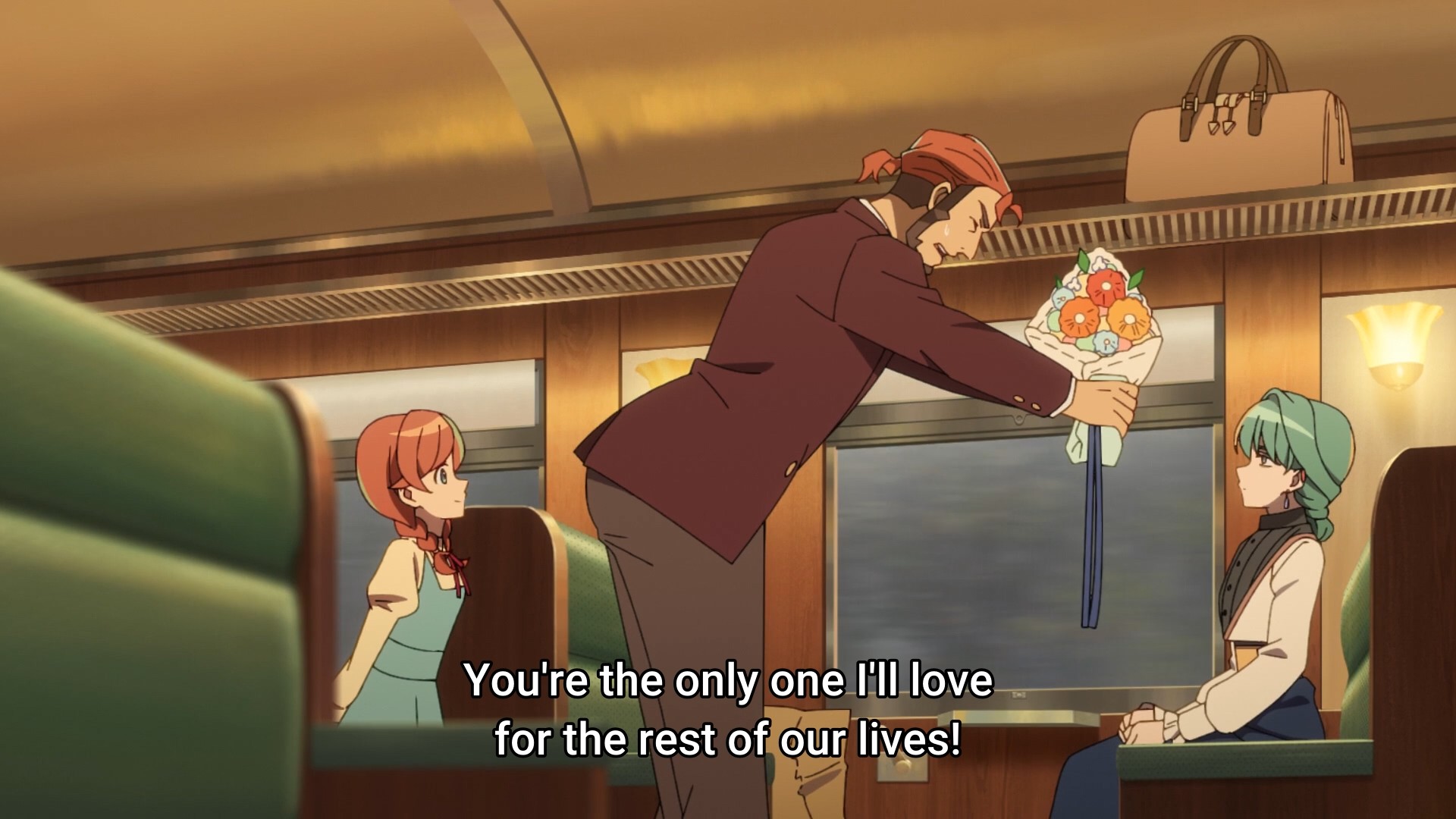 The narrative tries to draw an equivalence between that cheating husband and Yugure’s lie by omission. Y’see, this is what happens when someone you loves lies to you! It hurts this bad! Eh, I dunno about that. Look, if Yugure knew he couldn’t handle the truth, then I get it. A lie is a lie, but if someone might kill themselves over the truth, it’s better to just shut up. And it sure as hell looks to me that he can’t handle the truth. Meanwhile, no world exists in which you should cheat on your partner for their own good, so it’s not the same.