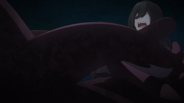 Something else that’s boring — besides the show’s complete lack of a plot — is just how no one has really changed or grown at all. And no, I’m not talking about their character levels, but this does remind me of my bigger issue with the show. Apparently, Sui has evolved and can now become a really big slime! But that’s just a game mechanic. In terms of character development, none of these characters have made any marked improvement. Mukoda’s character arc is a flat line.