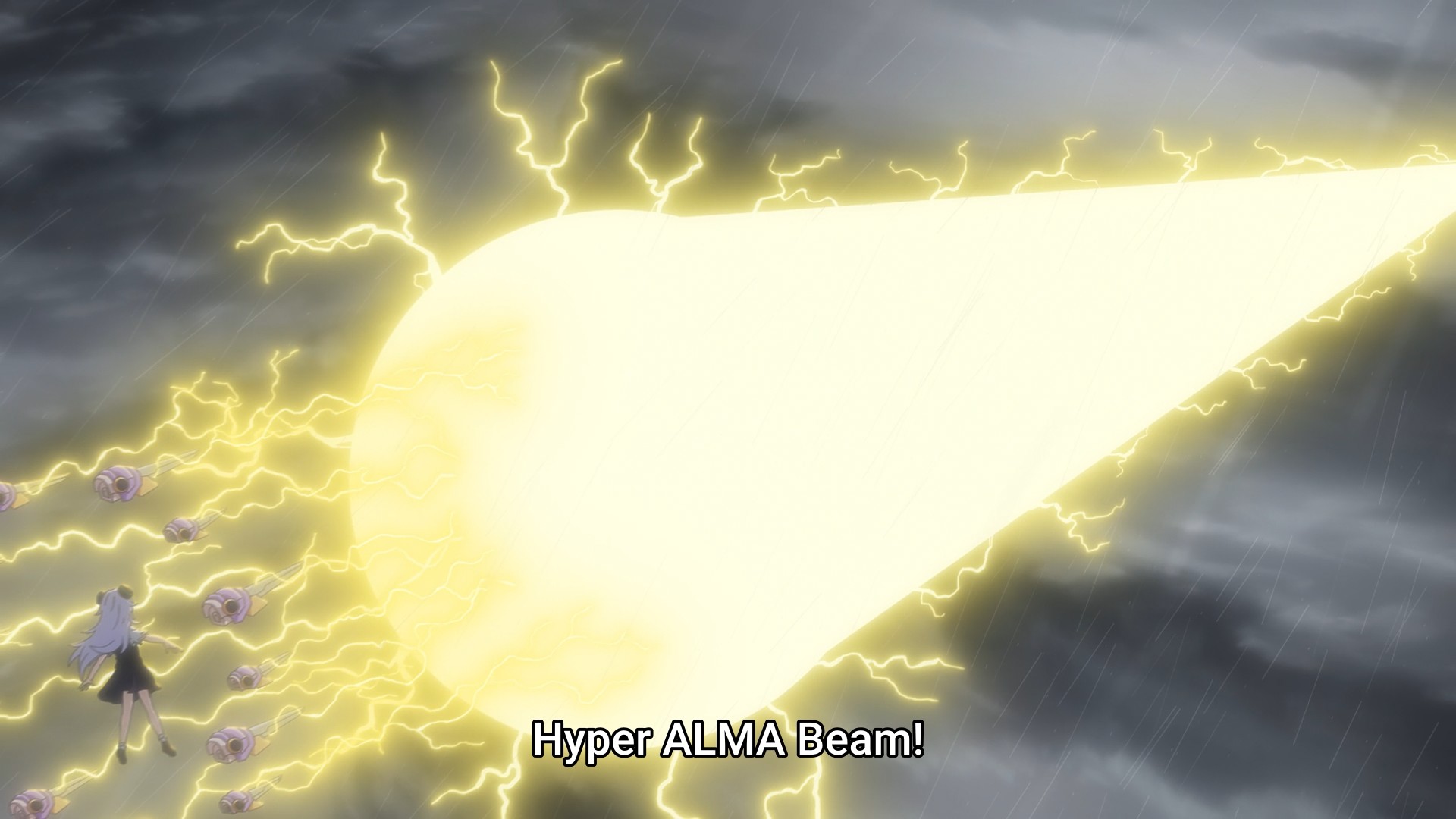 In the latter half of the episode, Alma wants to spend time with her parents before her summer vacation is over, so they pack a bunch of activities into a very short time period. We even get a mini beach episode where Suzume shows up in a bathing suit but Enji just wears a shirt. Guys really don’t have to try, huh? Also, when a typhoon threatens to cancel a summer festival, Alma literally shoots the typhoon down with a laser beam. Well, would you look at that! I guess you can nuke hurricanes after all!