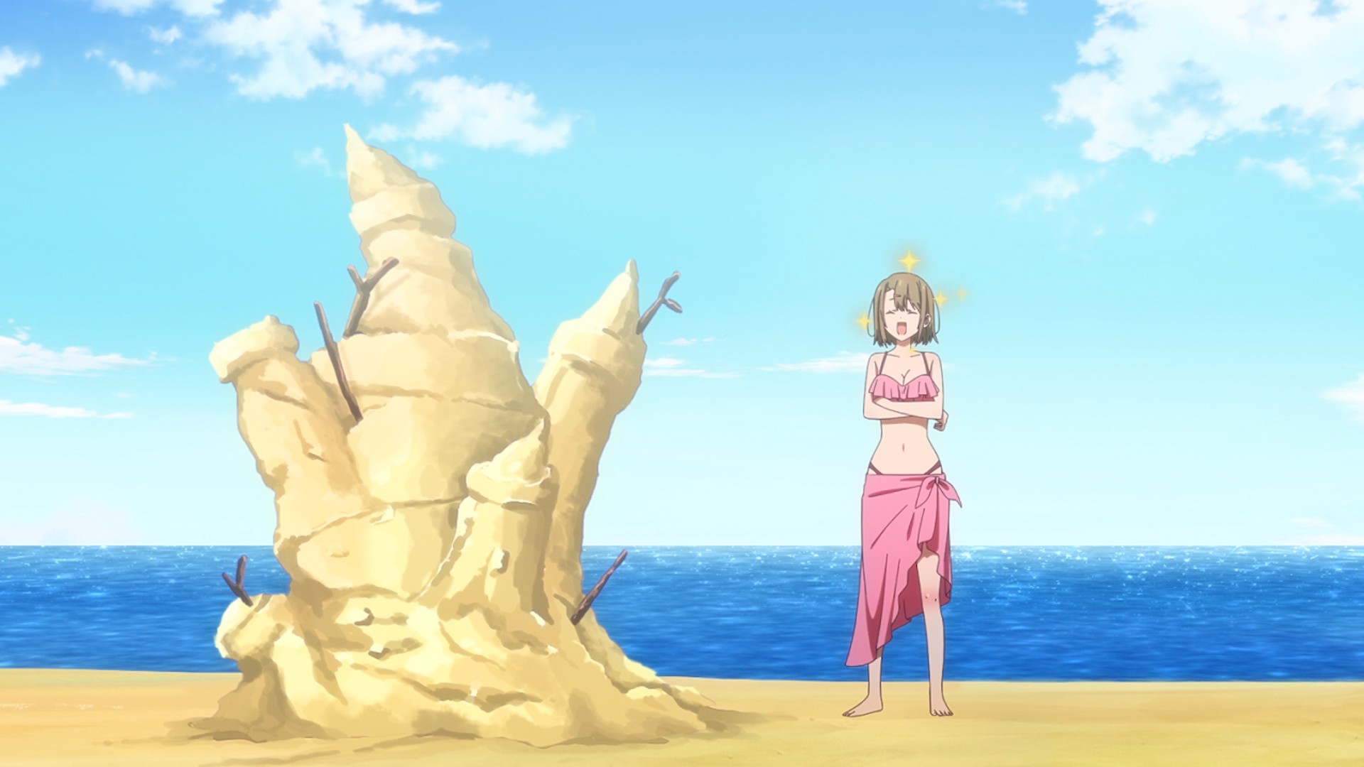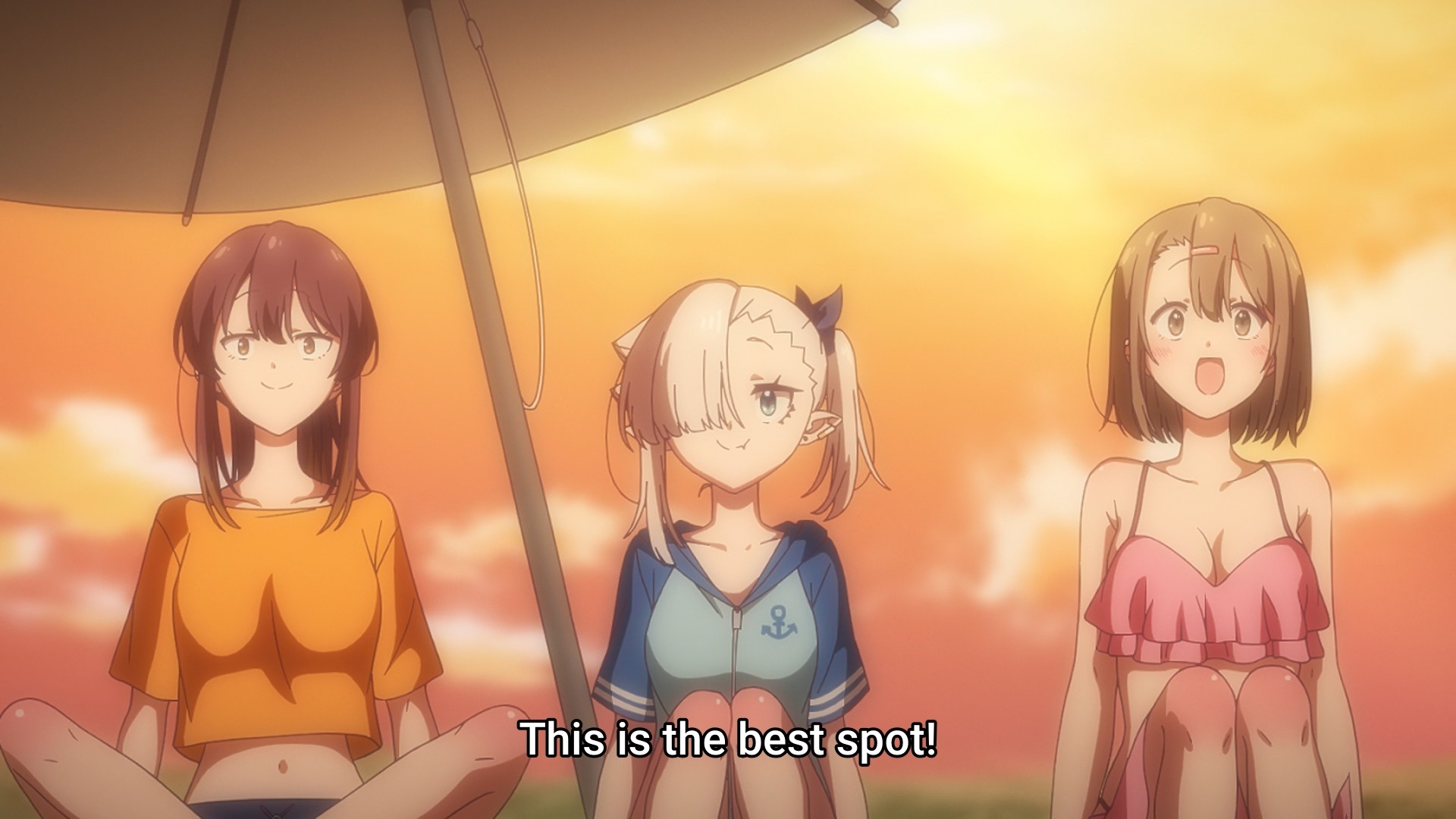 We finally get the beach episode, and it’s about as tropey as you can get. Luna and Otori try to swim, but they can’t. So they eat good food, build sand castles, stare at the sunset, light fireworks, and tell each other how much fun they had. That’s it. The show pretty much lined up a bunch of clichés in a row and knocked them down one by one. This is is one massive nothingburger of an episode.