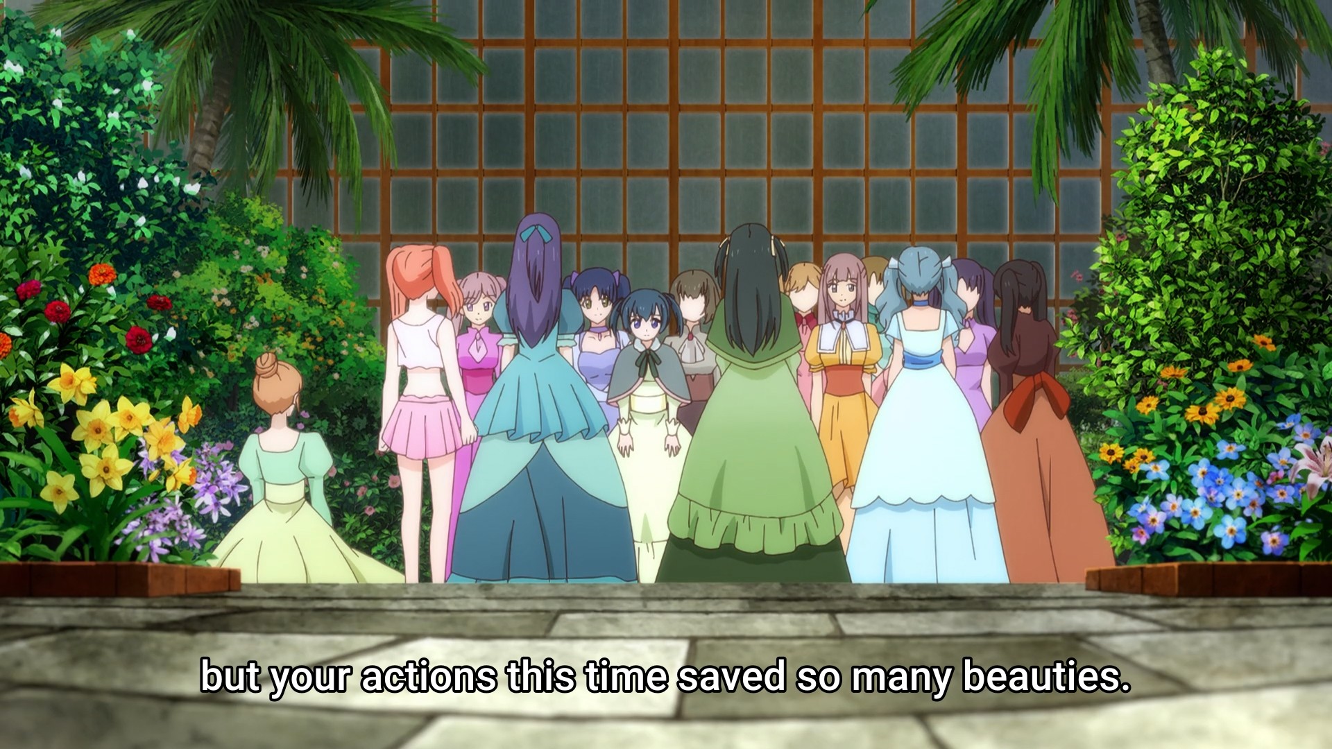 In the aftermath, Amaryllis tries to poison herself, but Iana literally tackles the woman to the ground to prevent this from happening. When Amaryllis’s brainwashed slaves retaliate, Sol knocks them out. He then gives Iana the sweet talk that was originally intended for Konoha. I mean, he’s gotta be the guy she ends up with, right? This show might be a reverse harem of sorts, but whenever the author — the actual author and not real Konoha — calls it quits, the last man standing has to be Sol. But moving along, Menoa testifies in Iana’s favor, but she also immediately fucks off without much of a goodbye. This is disappointing, because I would like to see Iana interact with people other than her bishie harem and her sister. Basically, I would like to see her make actual friends. If you read my posts on other shows, this is something I harp on a lot. I want these main characters to form organic relationships with their own peers and not constantly hide within their self-made bubble. Alas…