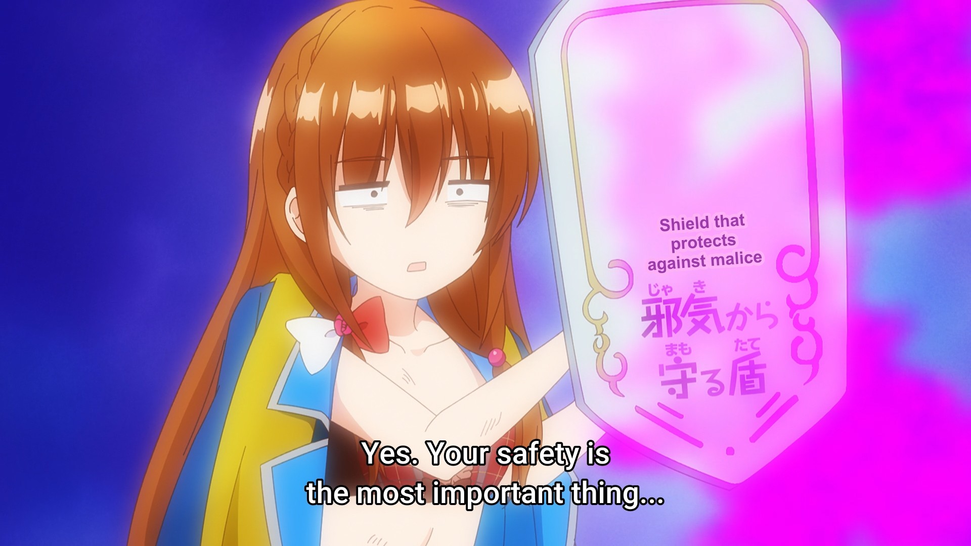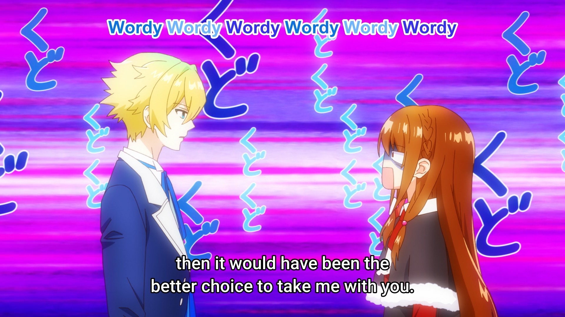 In the aftermath, the masses are still scared of Iana, which is understandable. They don’t interact with her on a daily basis. All they know is past Iana’s history of abominable crimes. On the other hand, Ginoford and Konoha trust her despite how shady she’s been at this party, so I guess you can call that progress. Unfortunately, Sol gives Iana a withering look that penetrates her defenses. The real Konoha inside her then remembers how her younger self had characterized Sol to be exactly like this with everyone he doesn’t love. Like I’ve said from the start, for this show to avoid being yet another generic “I was reborn as the villainess of my favorite game/light novel/whatever,” then real Konoha needs to use her unique position as the story’s author to be a little meta, a little reflective. But does this moment count? She’s just kinda explaining Sol’s personality as a fact of the matter. Why was he written to be this way? Because that’s what her younger self desired. But how does she feel about him now? Does she still think boys like him are cool? Or does she think differently these days? Y’know, deconstruct your story and re-evaluate it! This is what your kid self desired, but what do you now desire as an adult? Would you want to be married to someone who acts like Sol? Do you think it’s healthy for man to be so cold to everyone but the one person he loves? Unfortunately, real Konoha never takes that extra step. She always stops short of actually analyzing her writing. Instead, she just goes, “OMG, he’s going to kill me!” And you might think, You seem to want real Konoha to lean towards a certain conclusion about her beloved characters. But not really. If she wants to put her foot down and declare, “Nope, I’m still down bad for men like Sol even as an adult,” then that would be fine too. Real Konoha embracing her childish writing with all its foibles would at least be interesting to see. My point is, I don’t want her to just explain her characters. I want her to take a stand on them, whether she still loves them or not.