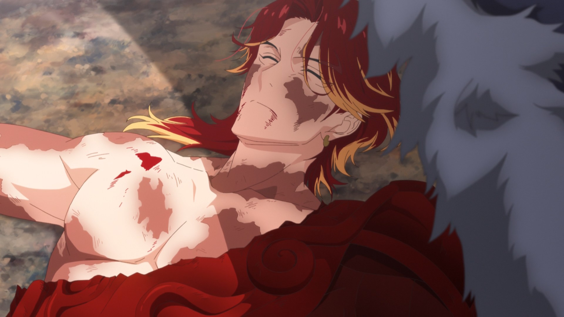 With two of the invading nations backing off, Julius takes this moment of respite to embrace Scarlet. The man has been staring down the dire possibility of losing his nation and his people, so I’m sure he must have been stressed out of his mind. Even so, it’s nothing that a lover’s touch can’t quell. Too bad they’re not exactly lovers yet. But to his credit, the prince is actually being earnest and vulnerable with Scarlet. It’s one of those rare moments where he isn’t taking advantage of the situation to tease her. If the moment would last any longer… Unfortunately, Alflame seizes the opportunity to spoil the mood. Ah well, you can’t kiss in the penultimate episode. You gotta save that for the very end.