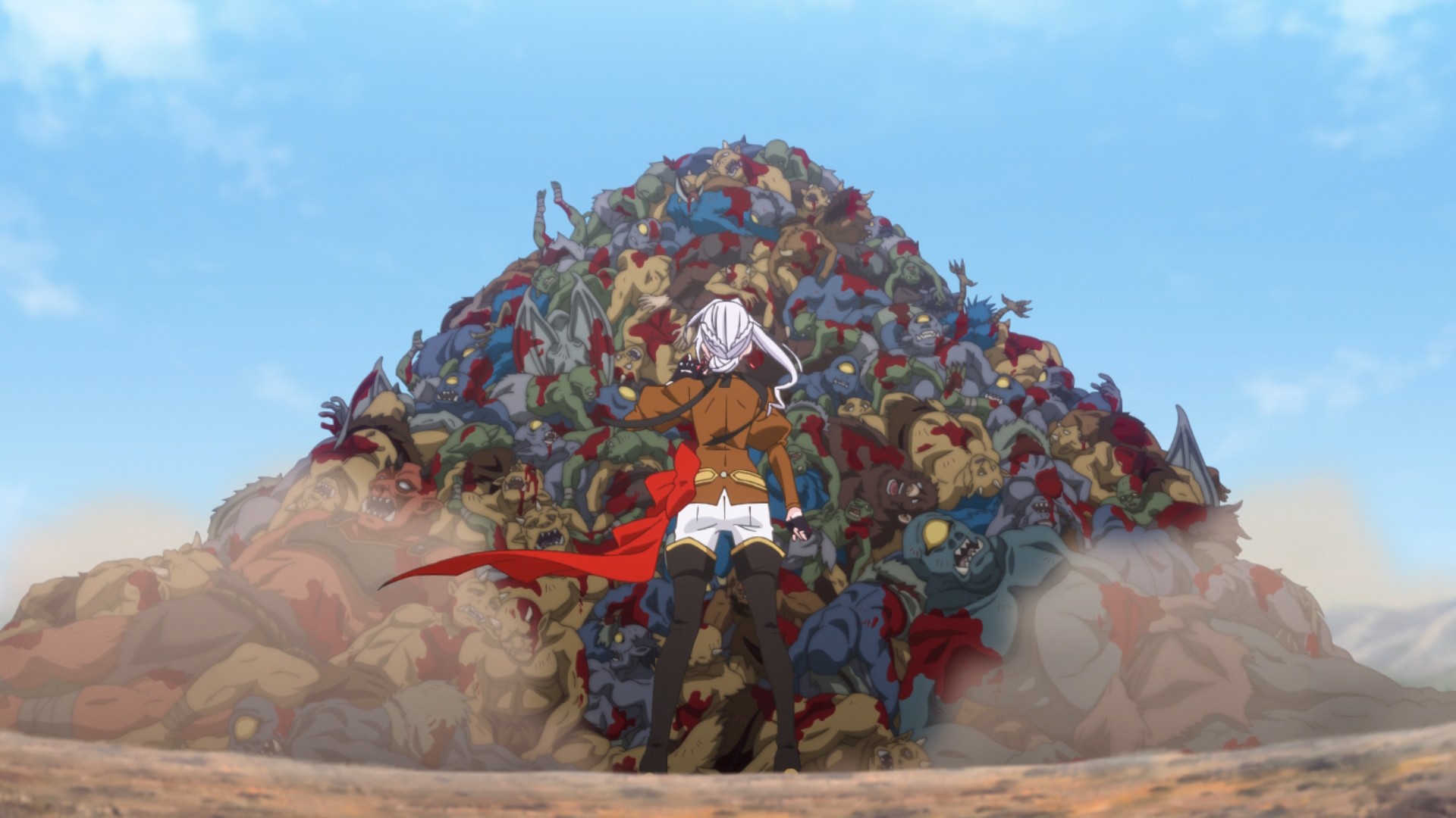 Elsewhere, Scarlet has to come to Alflame’s aid. I guess he’s not as durable as he claims. Nevertheless, this just means our girl has to fight more generic fantasy mobs. Like I said last week, punching random orcs, ogres, and cyclopses means nothing to me. Scarlet started out as the people’s hero because she punched corrupt humans. Yes, she can still be the people’s hero by defending them against an invading mob, but it’s just not as interesting. Hell, it’s not interesting at all. These mobs represent nothing. You can stack their corpses as high as you want, but it won’t make for a compelling watch.