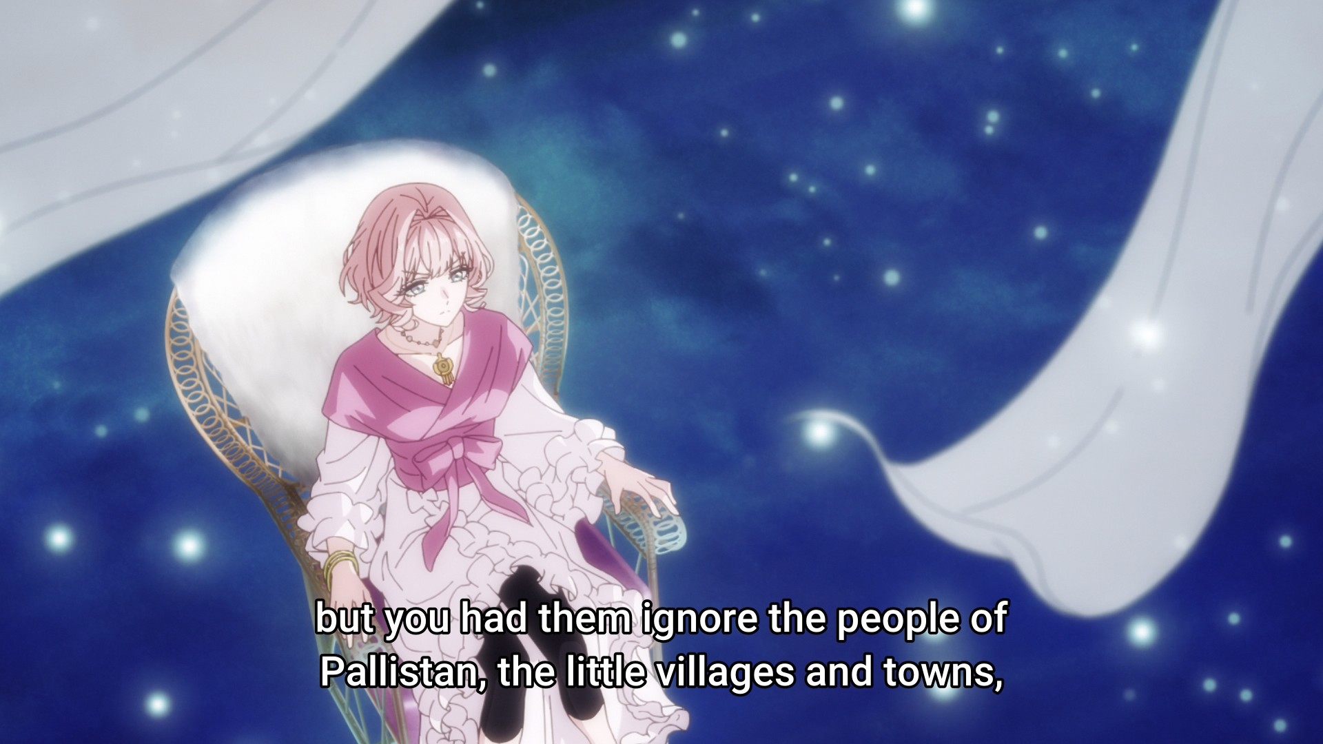 But there is another possibility — a cornier, schmaltzier one befitting of a season finale. Julius is a prince. He is a love interest. And yes, although he can sometimes be annoying, he hasn’t really done anything wrong. Scarlet is supposed to punch evildoers, not the boy whose biggest crime is making her feel both fluttery and angry at the same time. Moreover, the ED is chock full of classic fairy tale imagery. Granted, the ED is also all about Terenezza, but that’s the point. How are you gonna let your rival — your foil — charm your man, especially when he all but declared his love for you in front of a rival prince from an enemy nation? As such, what better way to put Terenezza in her place than by charming Julius back to his senses? Again, if we’re working the classic fairy tale angle, then we already have the perfect solution: wake the prince up by kissing him. But I wonder if Scarlet can be that bold. I guess we’ll find out.