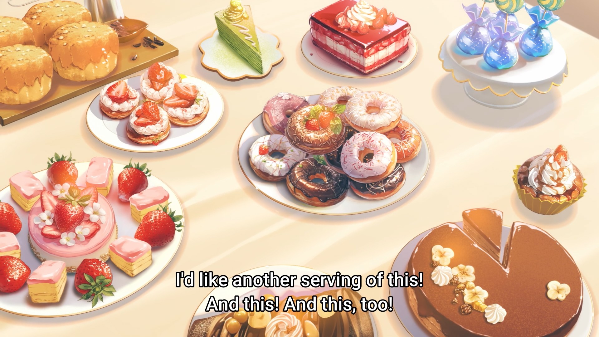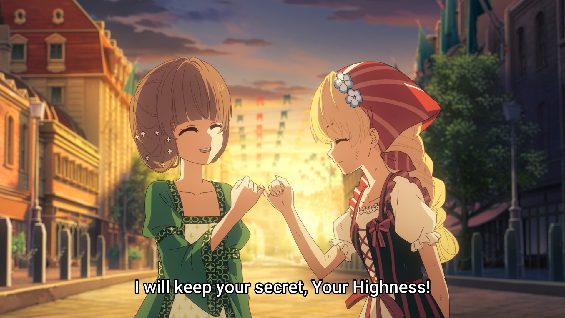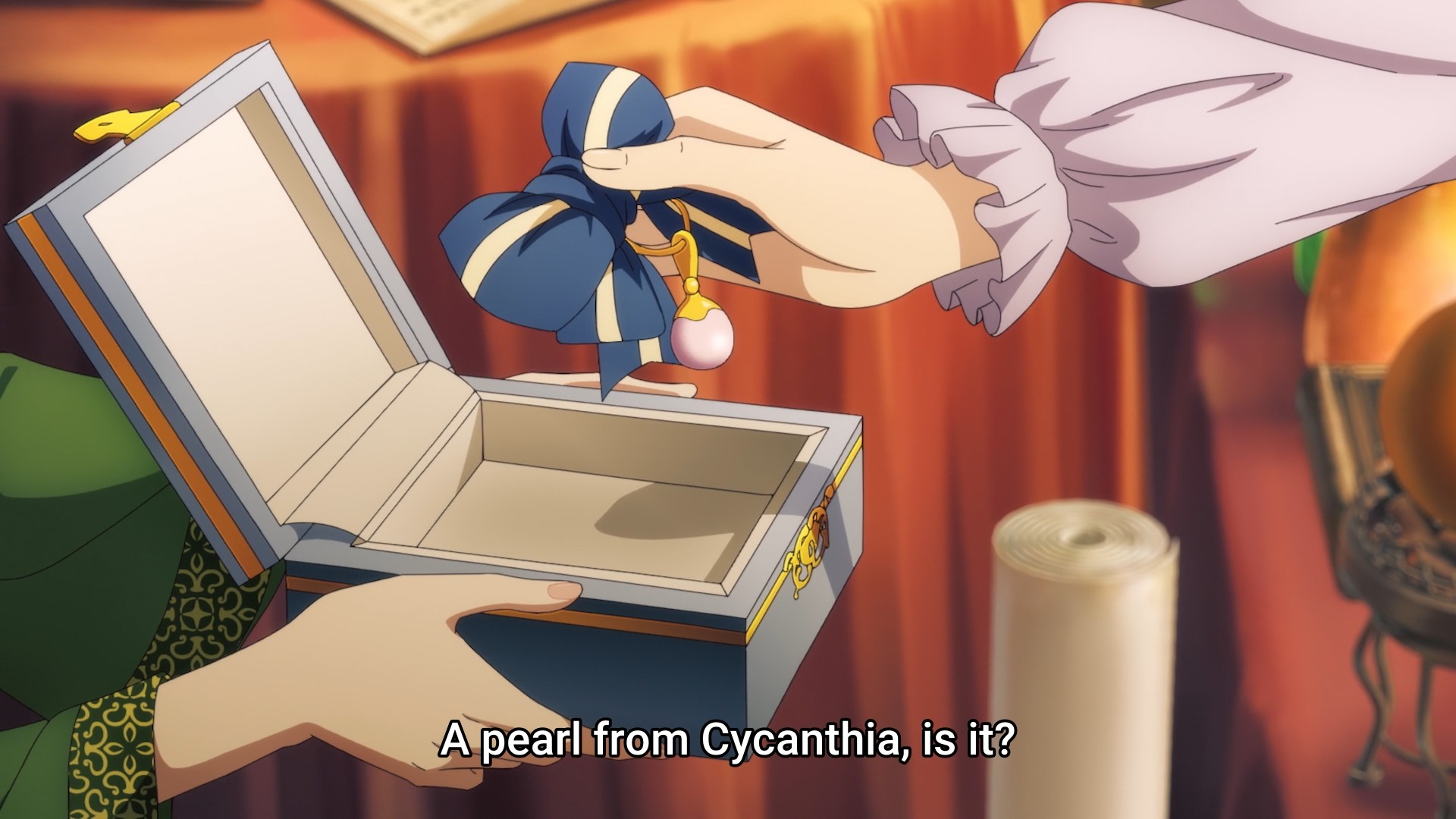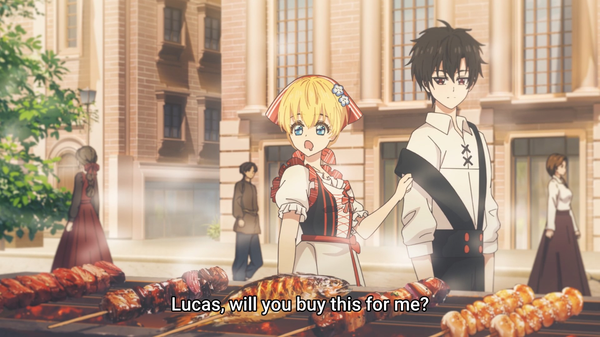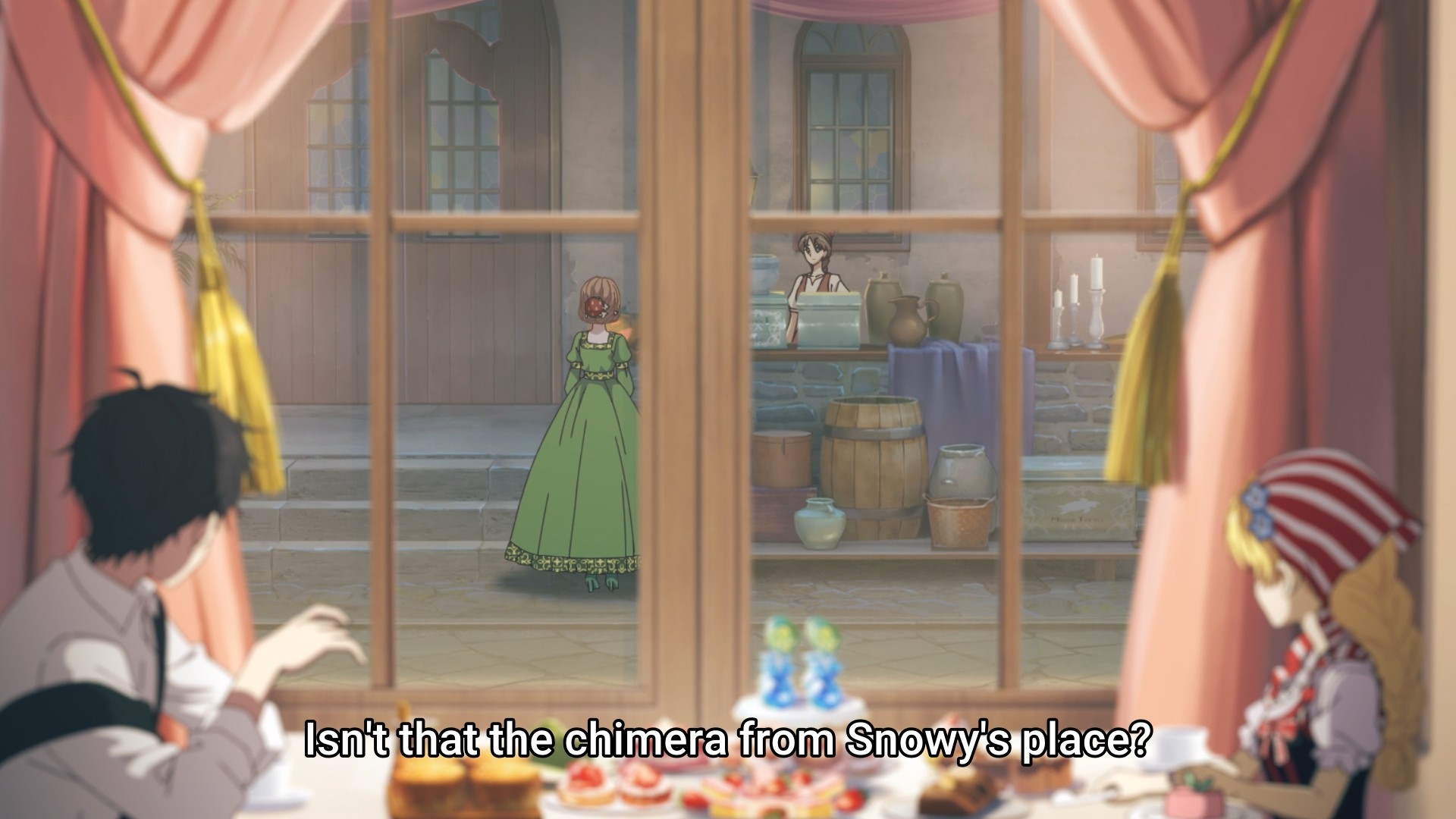 After mildly stroking his ego, Athy wins herself a trip out of the palace. And just like that, she’s already having a more balanced diet. Yes, girl, you can eat something besides sweets and pastries. You’re a growing child, so please indulge in more fresh fruits and meat. Granted, there are still sweets and pastries to be had — mountains and mountains of sweets and pastries to be had. Lucas doesn’t complain once about having to pay for everything. Being a princess’s tutor must pay well. Somehow, Athy and Lucas fortuitously manage to catch a glimpse of Jennette out and about, and what is the girl doing? She’s shopping for a gift specifically for Athy. Just across the window from them too! Wow, what a coincidence! What a small world! I feel like a princess would be able to get her hands on all sorts of fancy baubles. As a result, I wouldn’t personally choose even more jewelry. Instead, I’d give them something they are not likely to be exposed to. But I don’t know a single rich person in my life, so what do I know? Maybe they do want useless, gaudy shit all the time.
