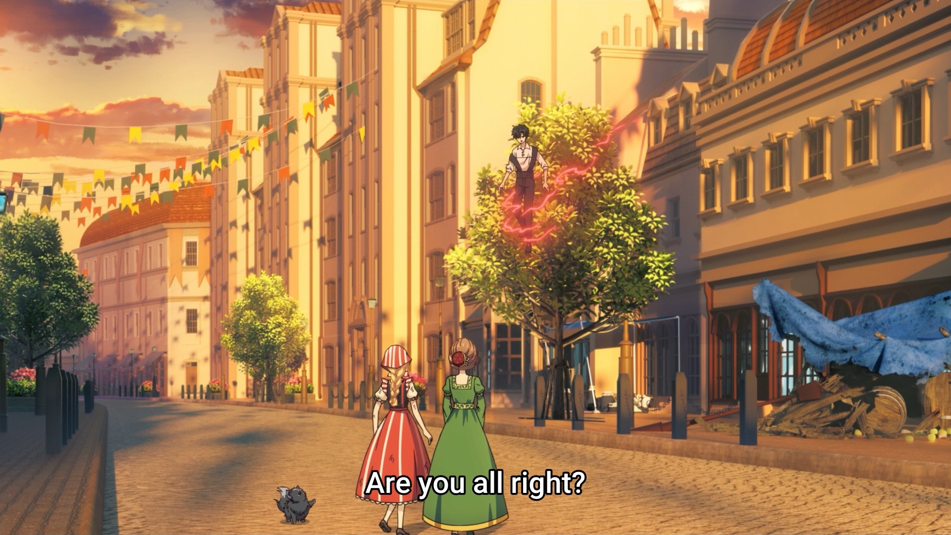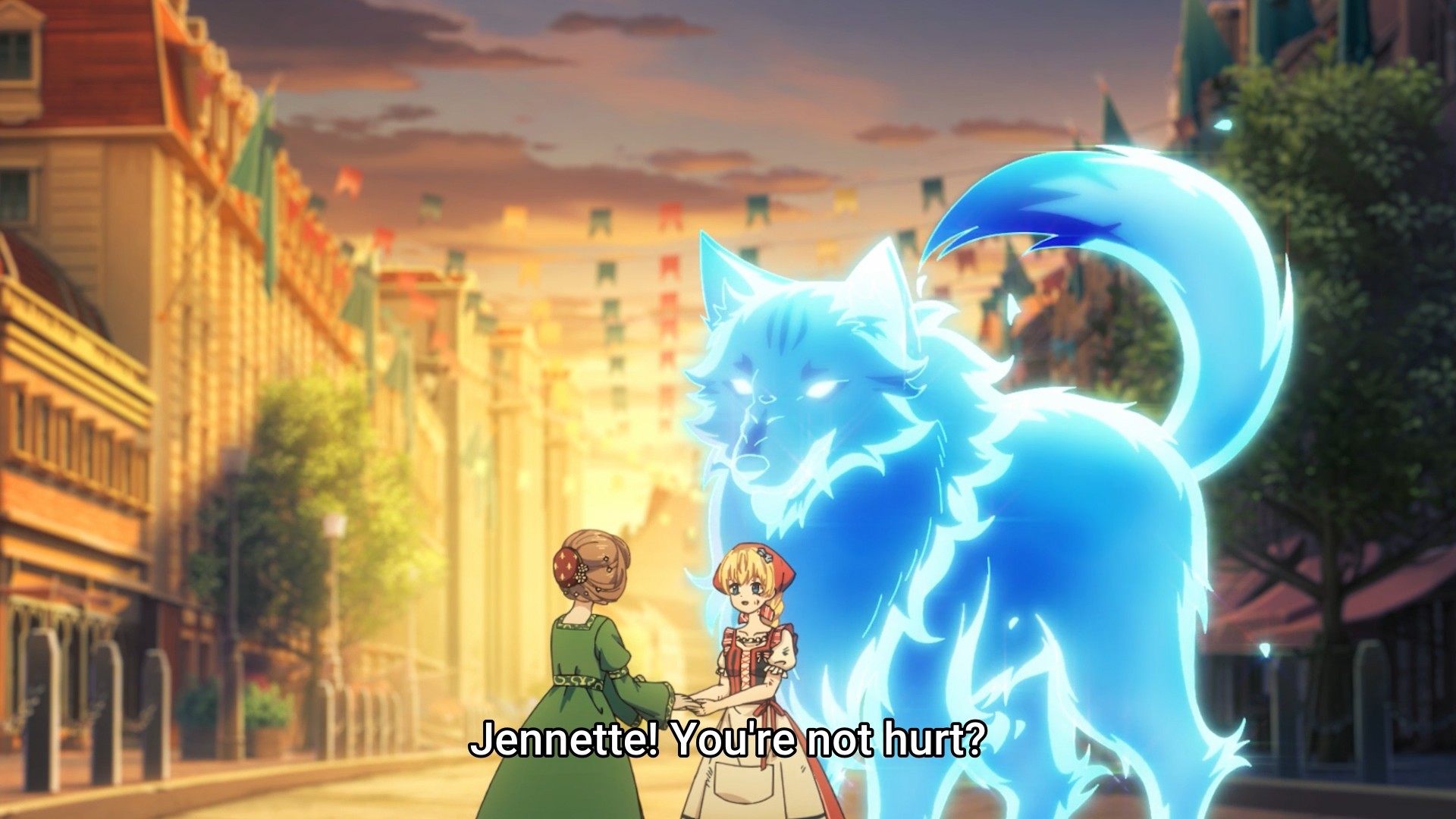 All of a sudden, Lucas senses a black magic threat and runs off, leaving Athy all by her lonesome. Hm, probably not the best idea. Shortly afterwards, that suspicious man from earlier approaches Jennette in a shop. I bet this bastard is a centuries-old wizard, too. In fact, he’s the reason Lucas ran off earlier. And now he’s going to create a mess for Athy to deal with: putting Jennette directly in the line of danger. This poor girl, man. She’s got a similarly tragic backstory as Athy, but she’s also a pawn in Ijikiel’s father’s political games. And now, she could potentially lose her life just because some creepy, old man wants to mess with Athy. Granted, our princess doesn’t hesitate to save her new friend — the bad guy is simply testing Athy’s capabilities — but still, give Jennette a break. On the plus side, this incident will at least bring the two girls closer together.