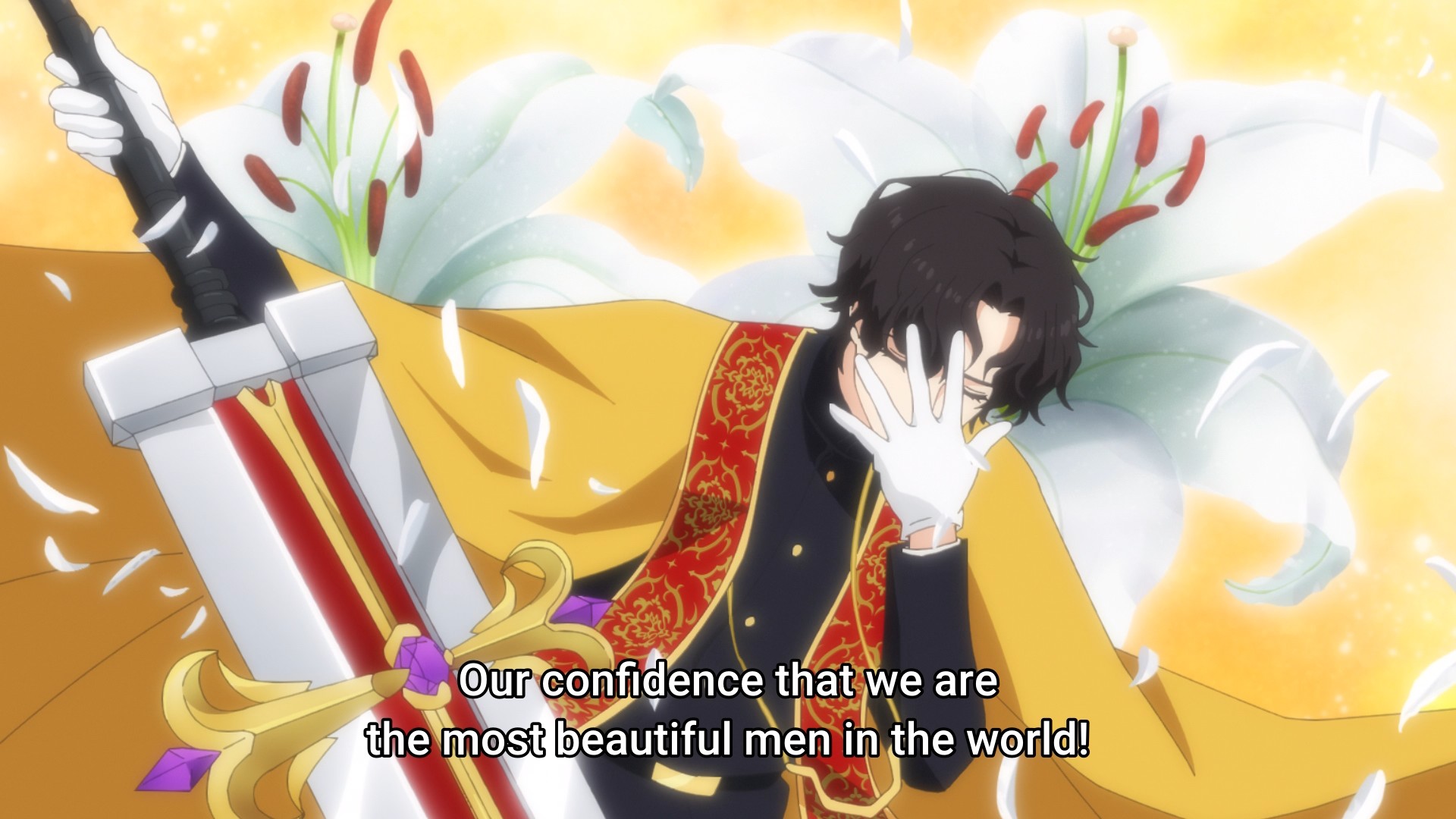 Julius looks so bored as he’s fighting, too. I mean, that’s certainly a choice by the animators. Unfortunately, his opponent wasn’t fighting in earnest. Rather, he was… uh, cutting a hole in reality in order to help Terenezza’s charm work its magic on the prince. Yeah, sure. I mean, our heroine can literally slow down time, so why wouldn’t the bad guy be able to create wormholes or whatever?