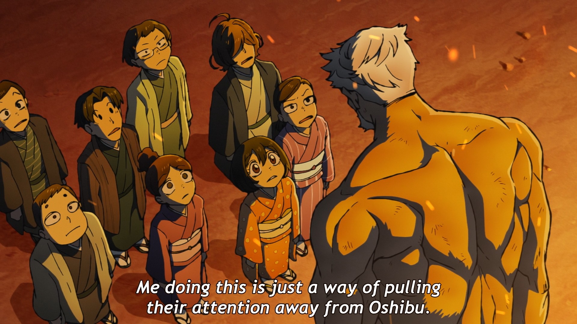 And just like that, the fight just ends. Oshibu knocks Sanda/Santa off the roof of a building, then walks away. I thought he wanted to kill this guy. I thought Sanda/Santa wanted to bring Ono back. But then we just stop fighting? Sigh. I guess this truly was just round three or four out of… I dunno how ever many fights they’ll have in the future. That honestly saps my enthusiasm to check out the source material. If the end goal of every anime adaptation is to convince the audience to fork over some cash, then this ain’t it. But midway through the season, I would’ve considered it. I probably would’ve been curious enough to see how the story unfolds. But after this episode, my curiosity is gone. I don’t really care what happens next. Maybe I’ll watch another anime adaptation of the show if a sequel ever sees the light of day, sure, but whatever. I’m good.