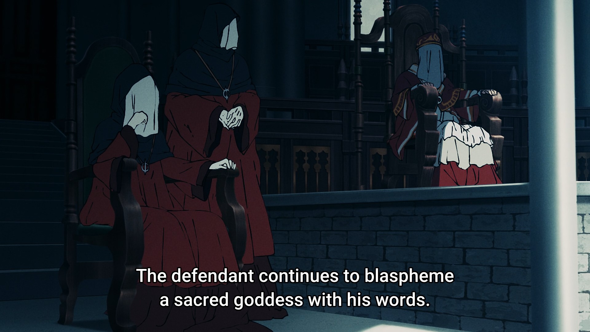 In Sentenced to Be a Hero, however, heroes are actually criminals. If you’ve committed a grave crime like, oh I dunno, murdering a goddess, then you will be branded a “hero,” and forced to serve, i.e. press-ganged into suicidal missions where death is no solace. After all, they — this nebulous “they” that represents these cloaked figures — can simply blow your head off, resurrect you, burn you at the stake, then probably resurrect you again for another mission because pawns are ever so useful. Why would you just let them die? It’s basically fantasy slavery to the extreme. So why call them “heroes” at all? Just so we can use a terminology that anime viewers are familiar with? That’s the part that I’m not a big fan of, but whatever. Perhaps I’m nitpicking.