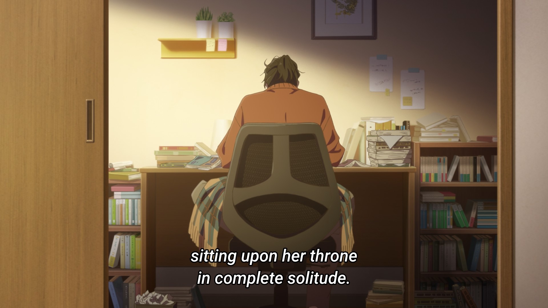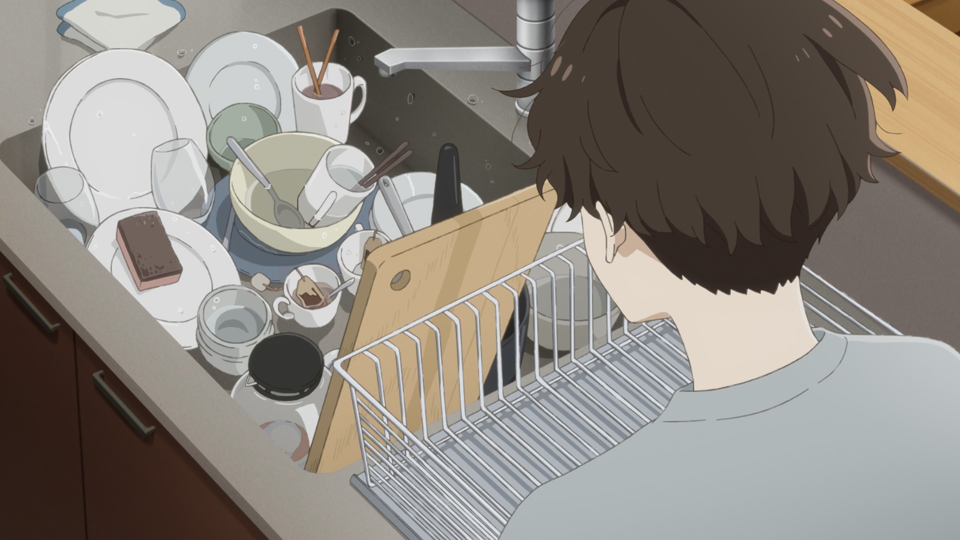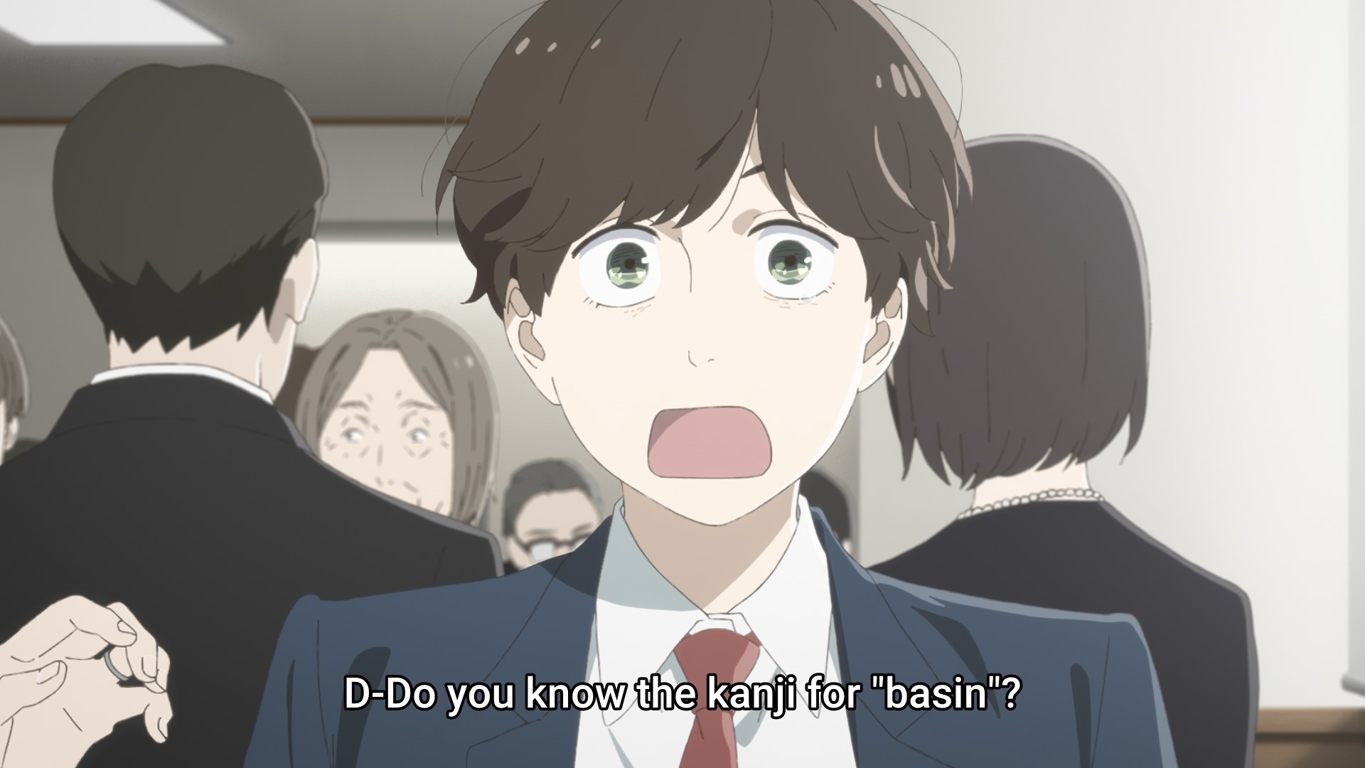 But that’s just how it goes, isn’t it? Everyone shows up for the funeral, because it’s a performative act that doesn’t require much if any commitment. Put on some nice, dark clothes that has been sitting unused in a closet for weeks if not months, show up to the funeral for a few hours, talk nonsense while ignoring the elephant in the room (the bereaved child), maybe shed a crocodile tear or two, then go on home and forget that the tragedy ever happened. Look, if we just ignore the problem, someone else will take care of it. Meanwhile, there’s a girl being thrown to the wind, trapped in the desert of her emotional hellscape. The way Asa lost her parents, I imagine she didn’t even get to say goodbye. Of course she didn’t. Her world instantly has been turned upside down, and there’s no time to even process it. She can barely cry, she can’t rage, she can’t do anything but struggle to find the kanji for the word “basin.”