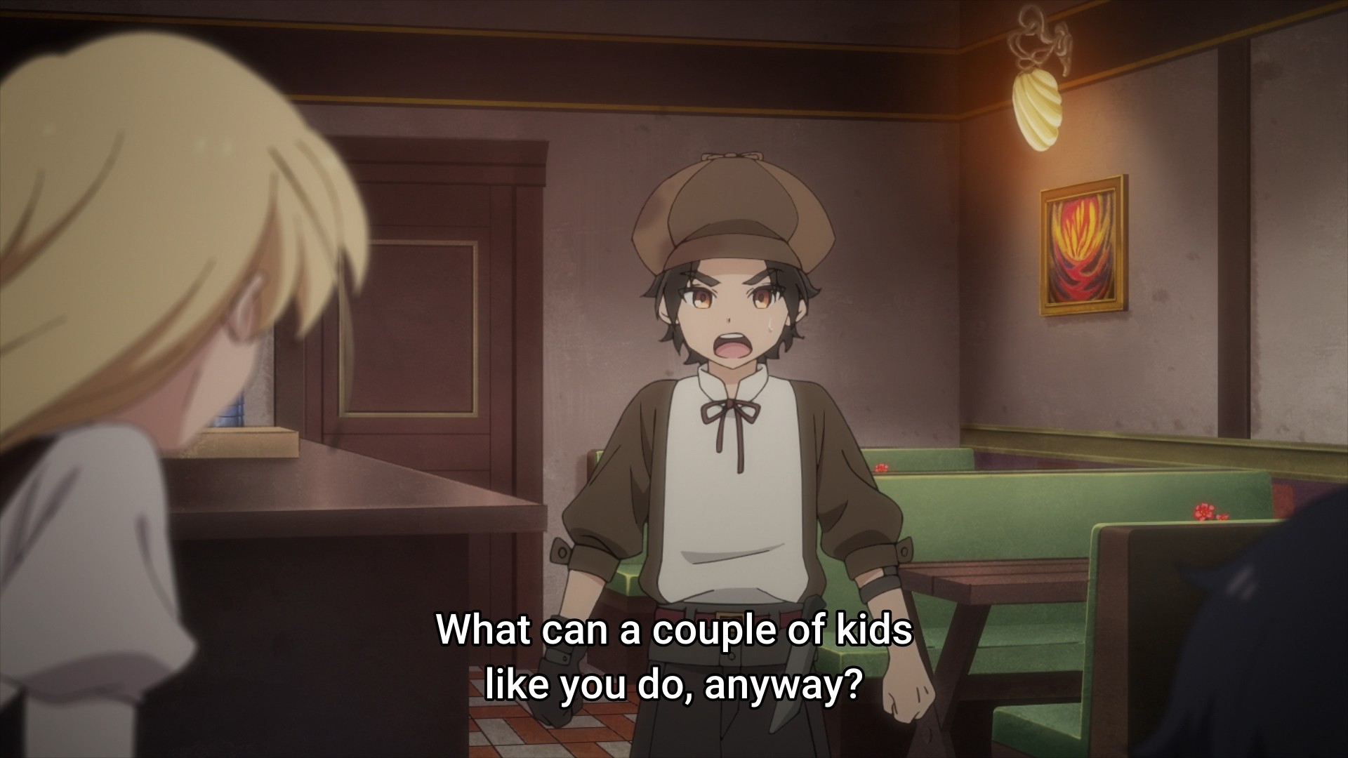 Louis Hartmann is a son of a detective who recently lost his life to a serial killer. The kid takes up his father’s mantle in order to get his revenge. He even turns down help from another detective agency, which… I mean, it’s kinda foolish, if you think about it. If you’re going after a serial killer, the longer you drag out, the higher the body count will be. But I guess it’s somewhat understandable, because that Louis is just a kid. But then we run into another problem: Louis being so immature means he’s reckless. And because he’s reckless, he goes and confront the villain by himself. Bravo on sussing out the killer via a clue that his father had left behind, but now what? It turns out the villain is actually a witch, but even if she had been a normal person, what did Louis expect to do? Apprehend an adult who has killed several burly men? So just like that, Louis bites it. He even gets zombified long enough to get his revenge on the witch. But hold on, back up a bit. All the promo materials for this show feature Louis front and center. Are we spoiling ourselves now? Does he somehow make his way back to the world of the living in order to join the other detective agency? Was I supposed to not look at the key art for this show when I clicked on it on Crunchyroll?