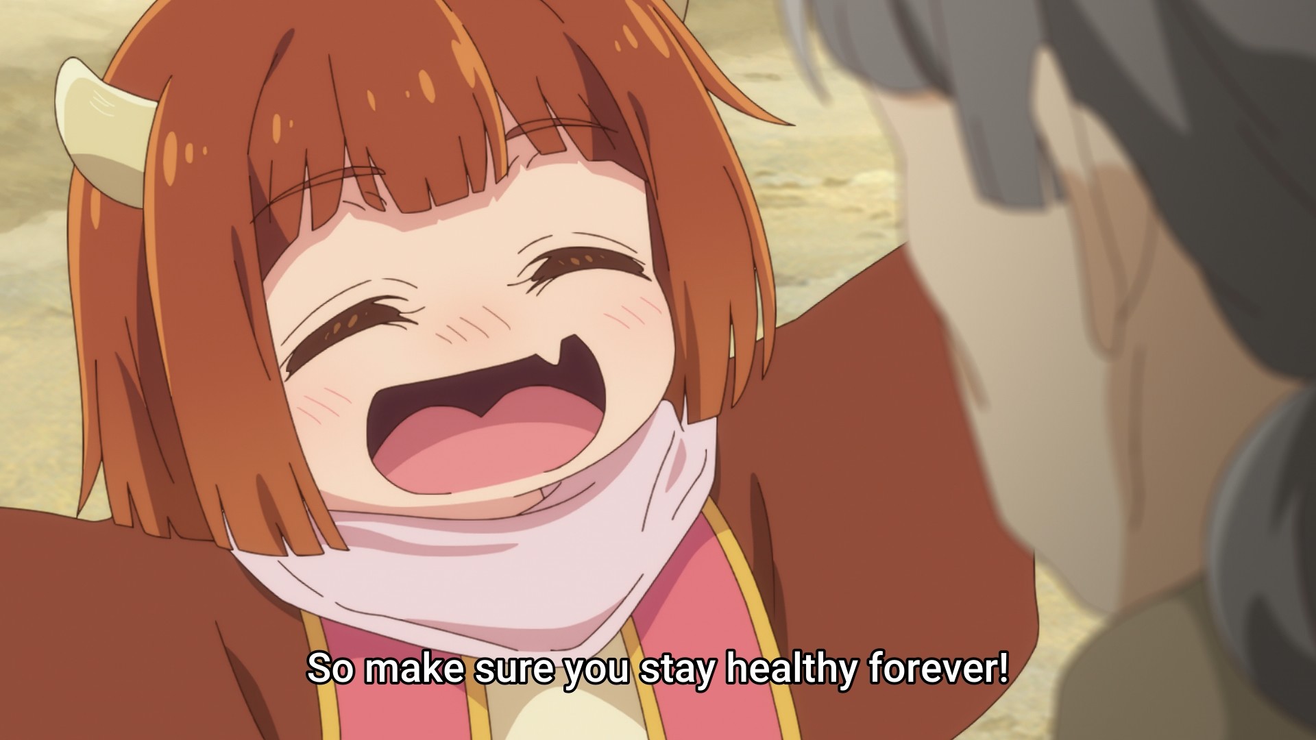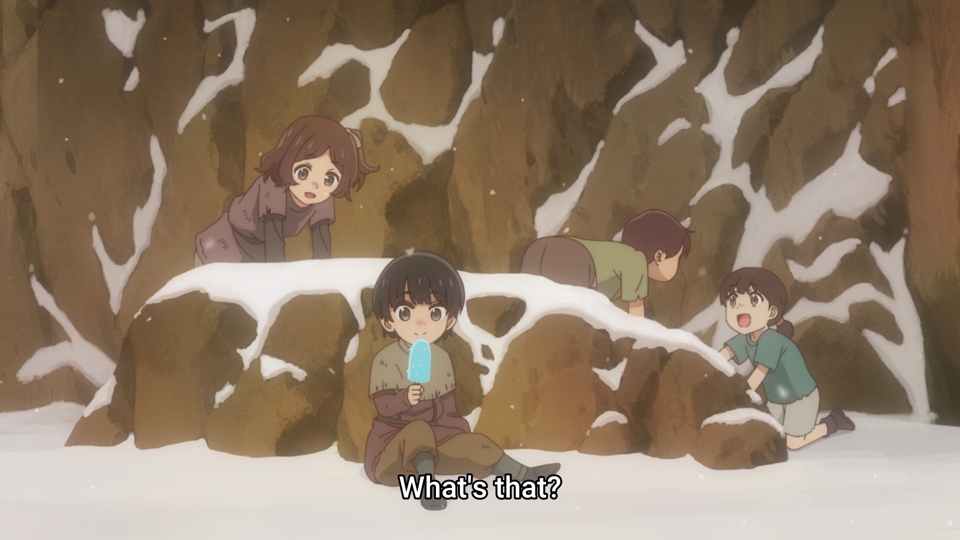 Color me even more surprised when the second episode also has a musical number in the snow. Are all the episodes gonna be like this? If so, I’m in. It’s still a little weird, because Doux’s father is sending his army out in order to attack and enslave humans. Hell, one of Doux’s new friends is a slave toiling away in the mines. The guy lost his precious family due to a recent raid, and as a result, has killed several demons with his own bare hands. So how wholesome is this show really? Sure, Doux gave these kids ice pops, but they’re still slaves, aren’t they? Despite this peculiar dissonance, however, this is still the only show today to make me smile. Maybe Doux can eventually reform her father’s kingdom and thus make demons and humans coexist peacefully.