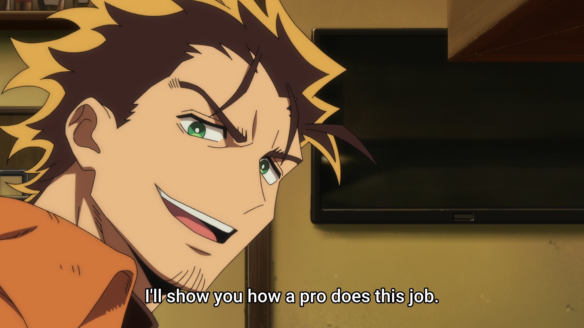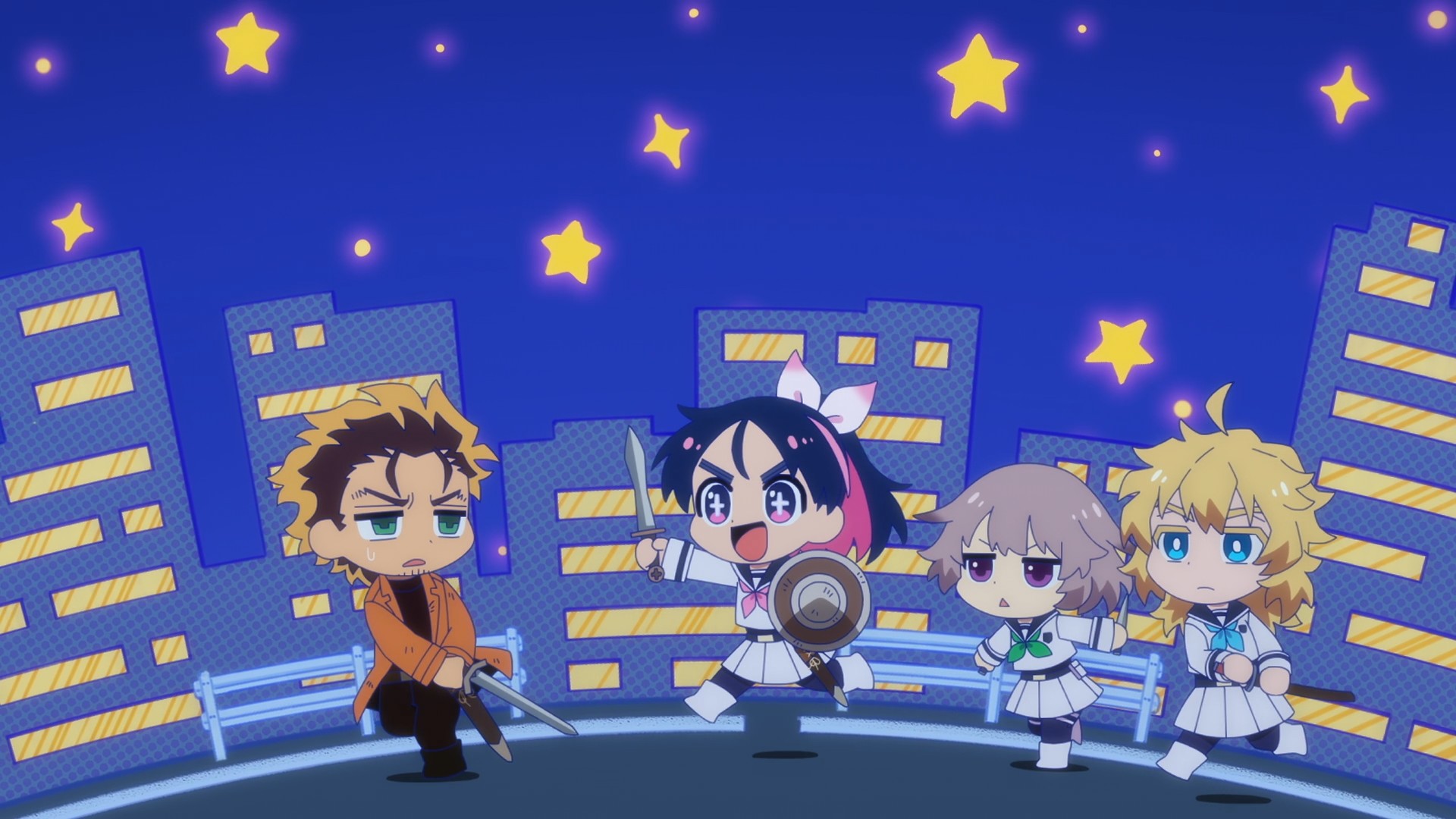 Thanks to recent medical advancements, gang leaders can augment themselves and become demon lords. They are in turn hunted by bounty hunters known as Braves (even though they keep saying “yuusha” over and over), who are in turn augmented by a drug that they inject directly into their necks. Our protagonist Yashiro is one such Brave, but he’s more of an antihero. He didn’t save Jogamine, a high school girl who also aspires to be a Brave, because he wanted to. It just more or less happened because her pursuer was being a shithead. And now she needs his help, because one of her comrades has been kidnapped by the local demon lord. Nevertheless, Yashiro won’t lend a hand unless he’s paid handsomely. That’s basically your first episode.