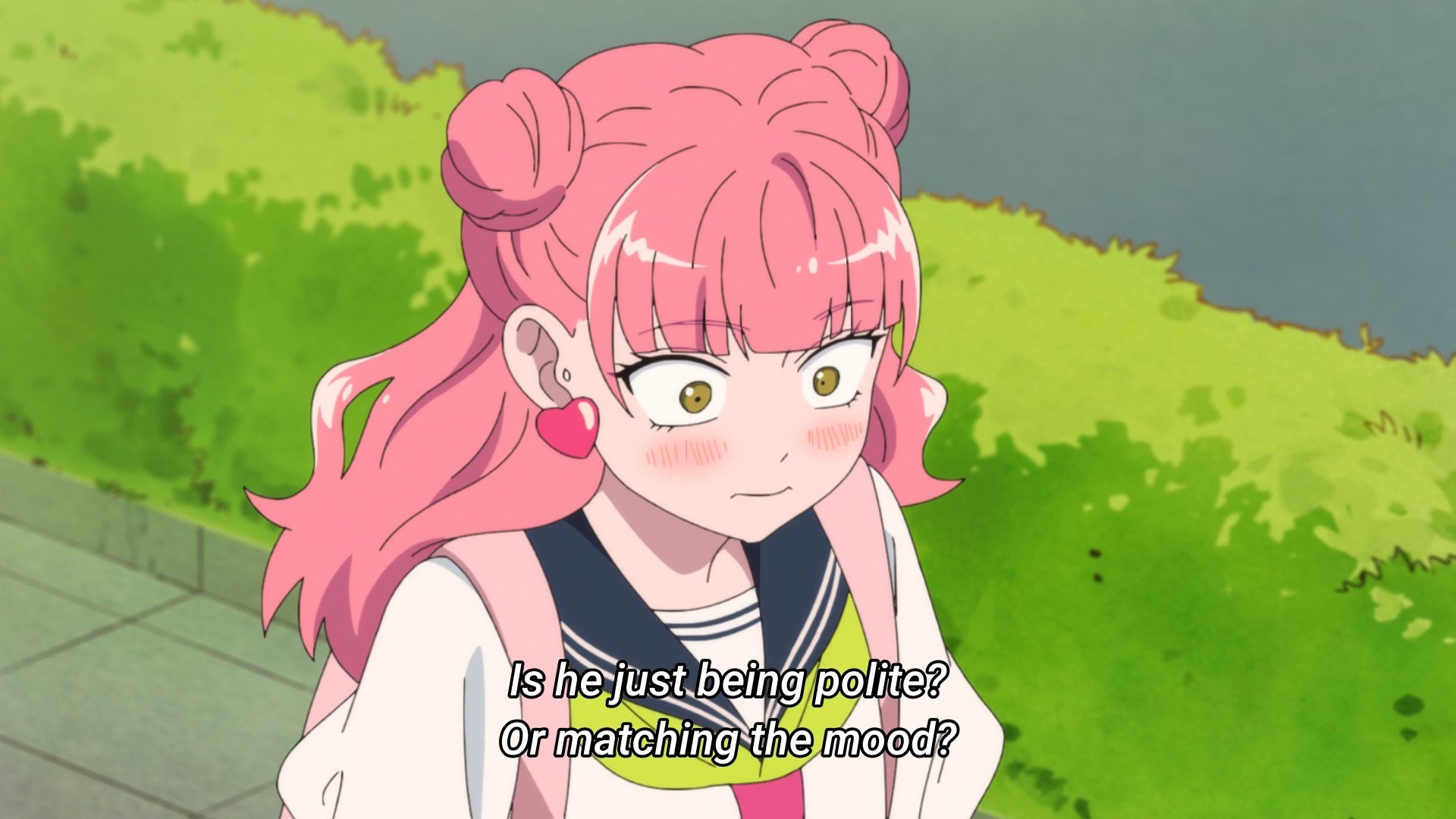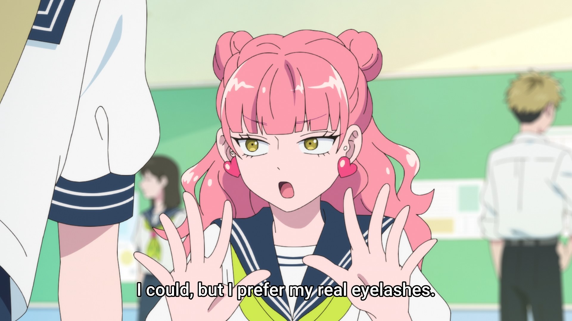 On paper, this is just another nerd x gyaru love story. It shouldn’t be anything special, and it arguably isn’t. But as I’ve said elsewhere, I’ve read and enjoyed the manga series mostly because 1) the gyaru makes silly faces and 2) the couple gets together in the first episode. And thank god for that. It turns out you don’t have to read over a hundred chapters before two people officially date. Nor do you have to abruptly end the story when it happens either. I get the appeal of the former, I do. People like to see a relationship slowly develop from the word “hello.” But boy, does the latter piss me off. But I digress. We’re talking about You and I Are Polar Opposites, which is low stakes, fluffy fun. It’s cotton candy. I enjoy it once in a while, but it’s not something I indulge in every day, every week, or even every month. For this cold winter season, however, I’ll let this bright, saccharinely sweet series take over.