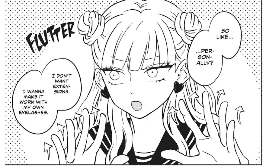- You would think her crush is obvious to everyone around her, since she’s been staring a hole in him ever since she got to class. Our girl even chokes on her food later when his name is brought up. But her besties aren’t quite as observant as, say, Muko and Miko from Dandadan.