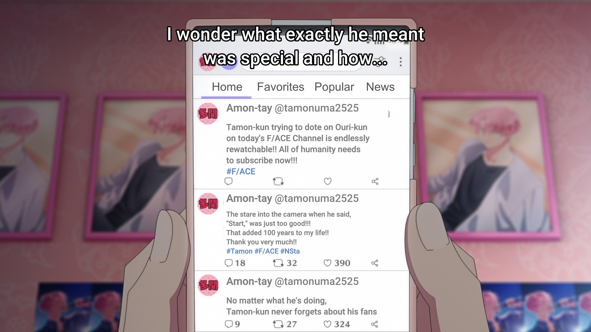 Anyways, this week’s episode finally introduces us to another member of F/ACE. Tamon confirms that he and fellow groupmate Ouri only pretend to be close for the cameras. But deep down, you know it’s all for show — that it’s just “kayfabe.” Nevertheless, this sort of inauthenticity bugs me. I remember when people would pair certain vtubers together, and if said vtubers had a stretch of weeks or months where they didn’t interact with each other as much, fans would flip their shit. You’re already watching a girl pretend to be a 2-D anime character, so you already know it’s fake. But now you insist that they live out your weird yuri fantasies? C’mon, bro. Oh, don’t even get me started vtubers celebrating their birthdays. At the same time, however, when vtubers act like besties, I could never buy in. I could never shake that gnawing feeling at the back of my mind that it was all for show.